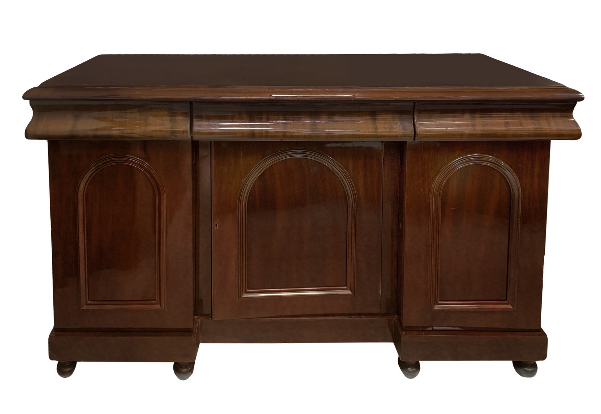 Credenza bassa vittoriana, in massello di mogano H cm 104x170x60 Tre ante inferiori e tre cassetti superiori piedi a pigna. Condizioni eccellenti