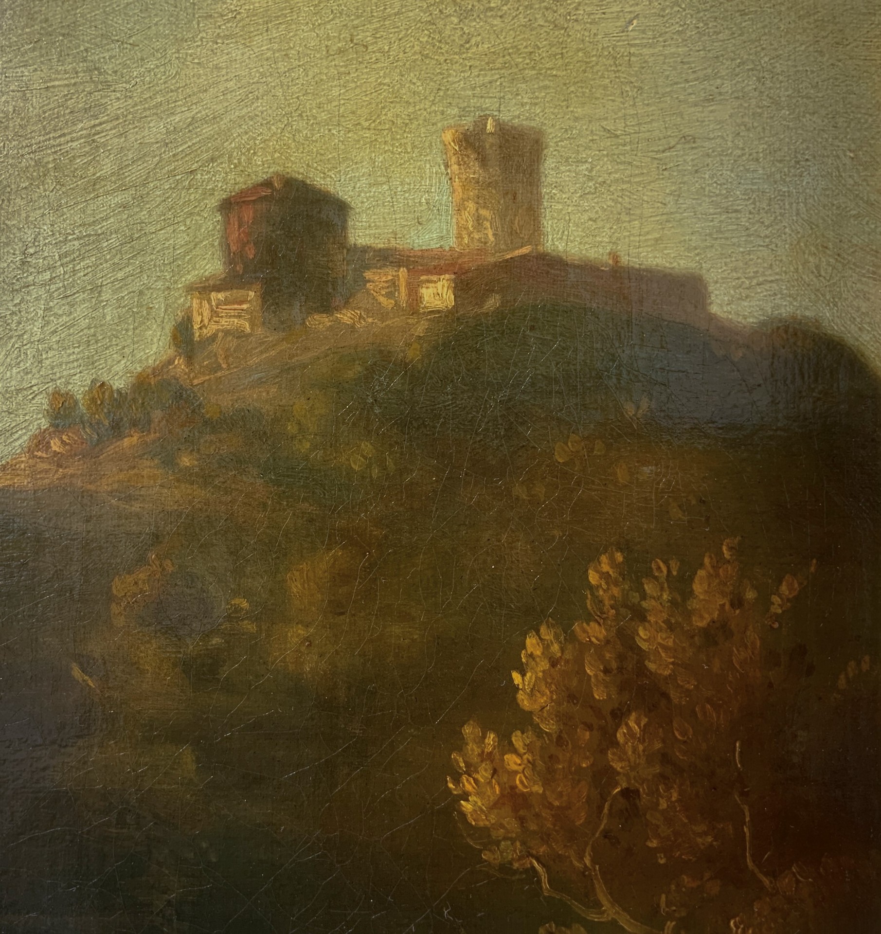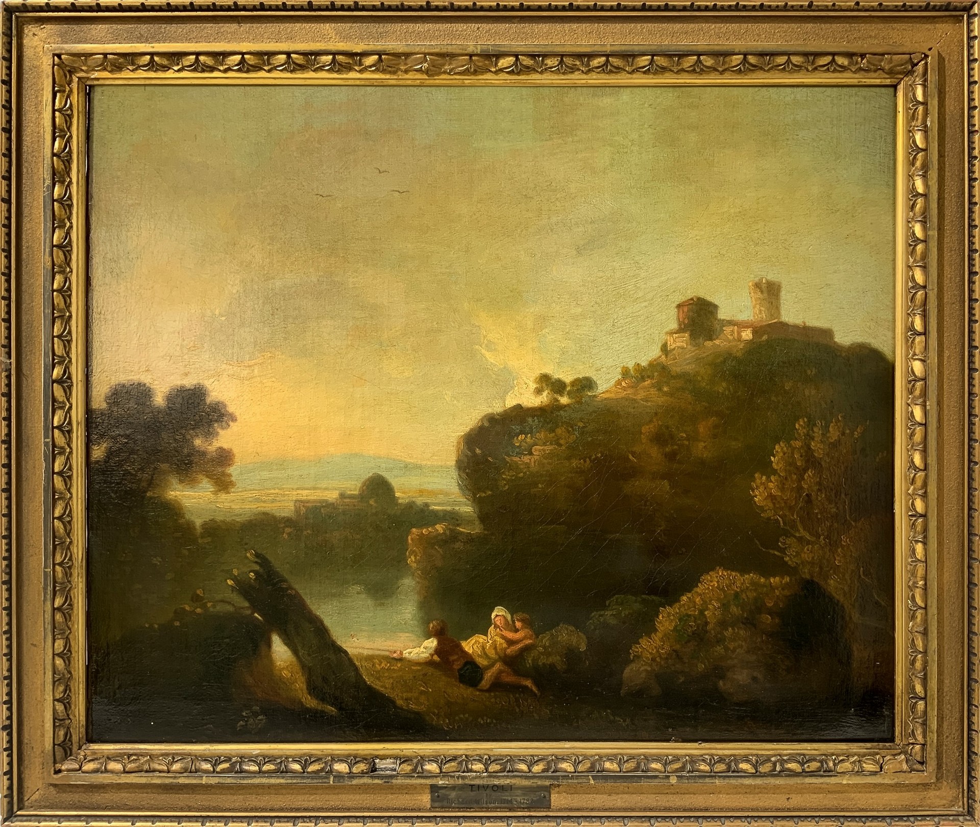 Richard Wilson (attribuito_a) (Montgomeryshire 1714-Denbighshire 1782) - Tivoli Cm 44x53, in cornice cm 53x62 Dipinto olio su tela Uno dei membri fondatori della Royal Academy di Londra nel 1768. Inizialmente si occupò di ritrattistica ma il suo interesse principale fu il paesaggio che divenne una costante continua del proprio operare.