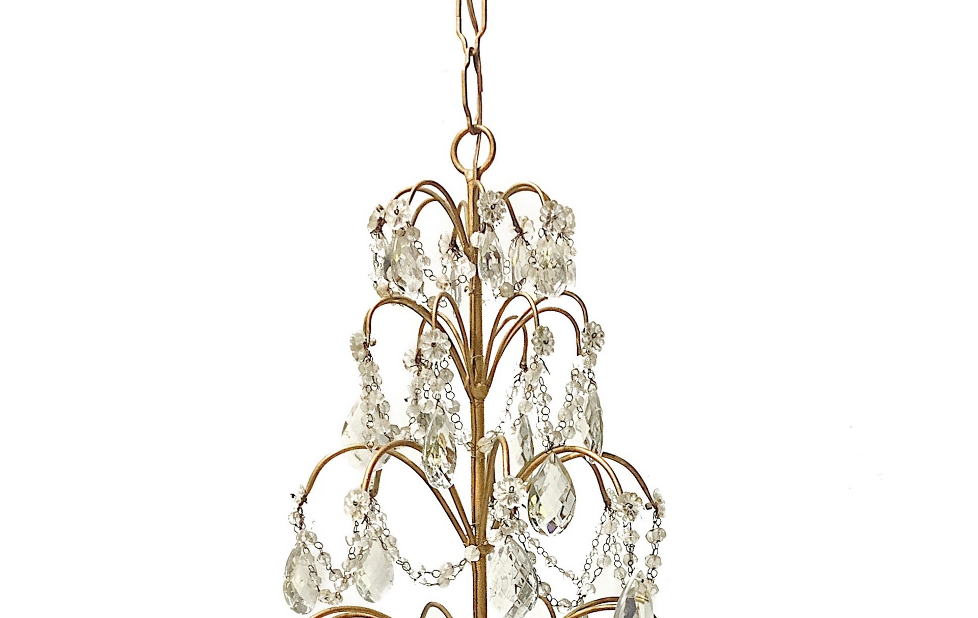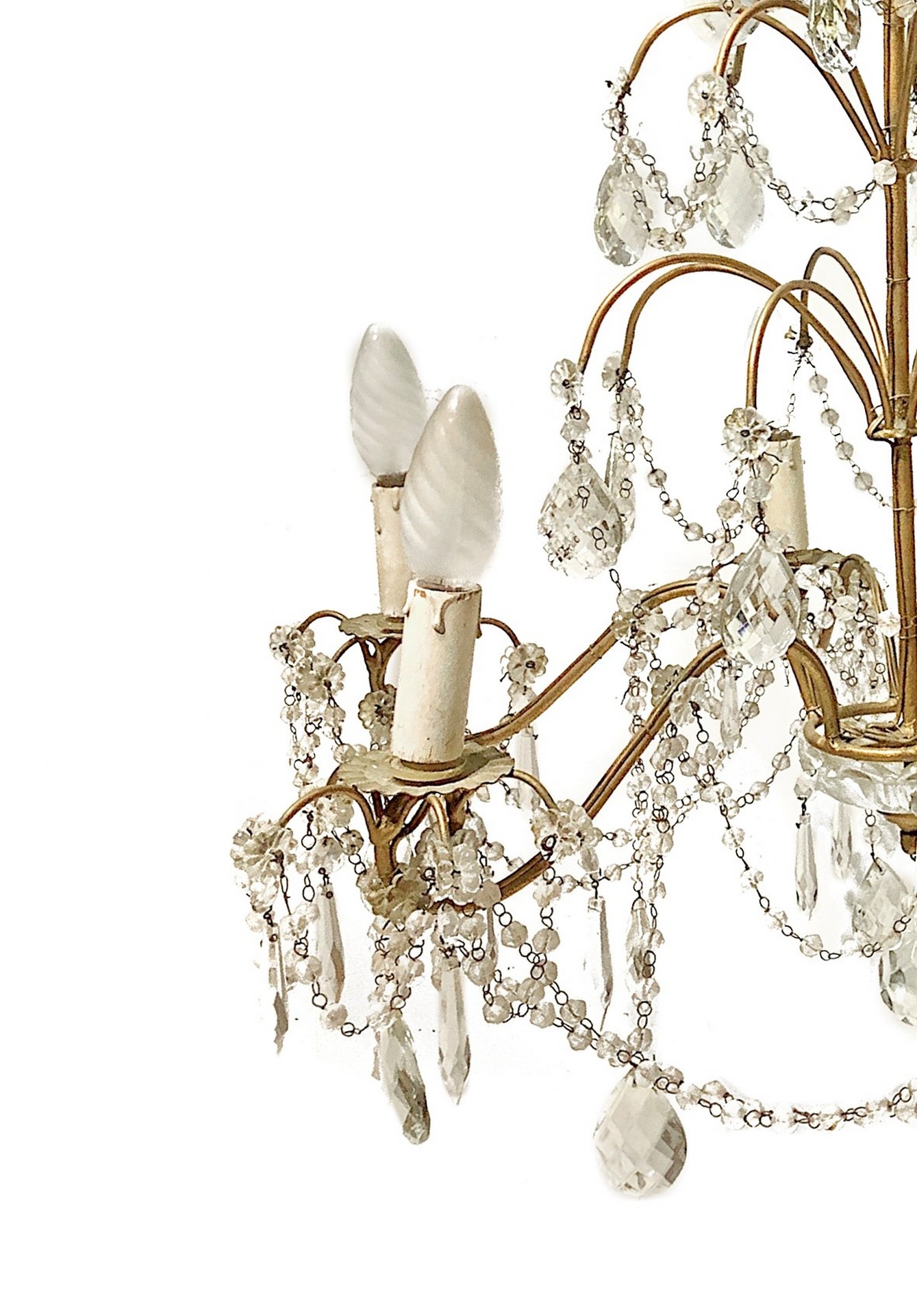 Coppia di lampadari a sei luci H cm 75 x (larghezza) 65 Struttura in metallo dorato con brindoli in vetro bianco