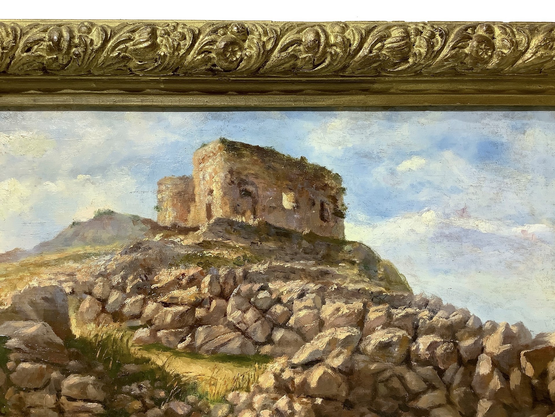 Califano, John (1864-1924) - Paesaggio rurale con animali al pascolo H 47,5 cm x Base 80 cm. In cornice: H 60 cm x 92 cm Dipinto ad olio su tavola