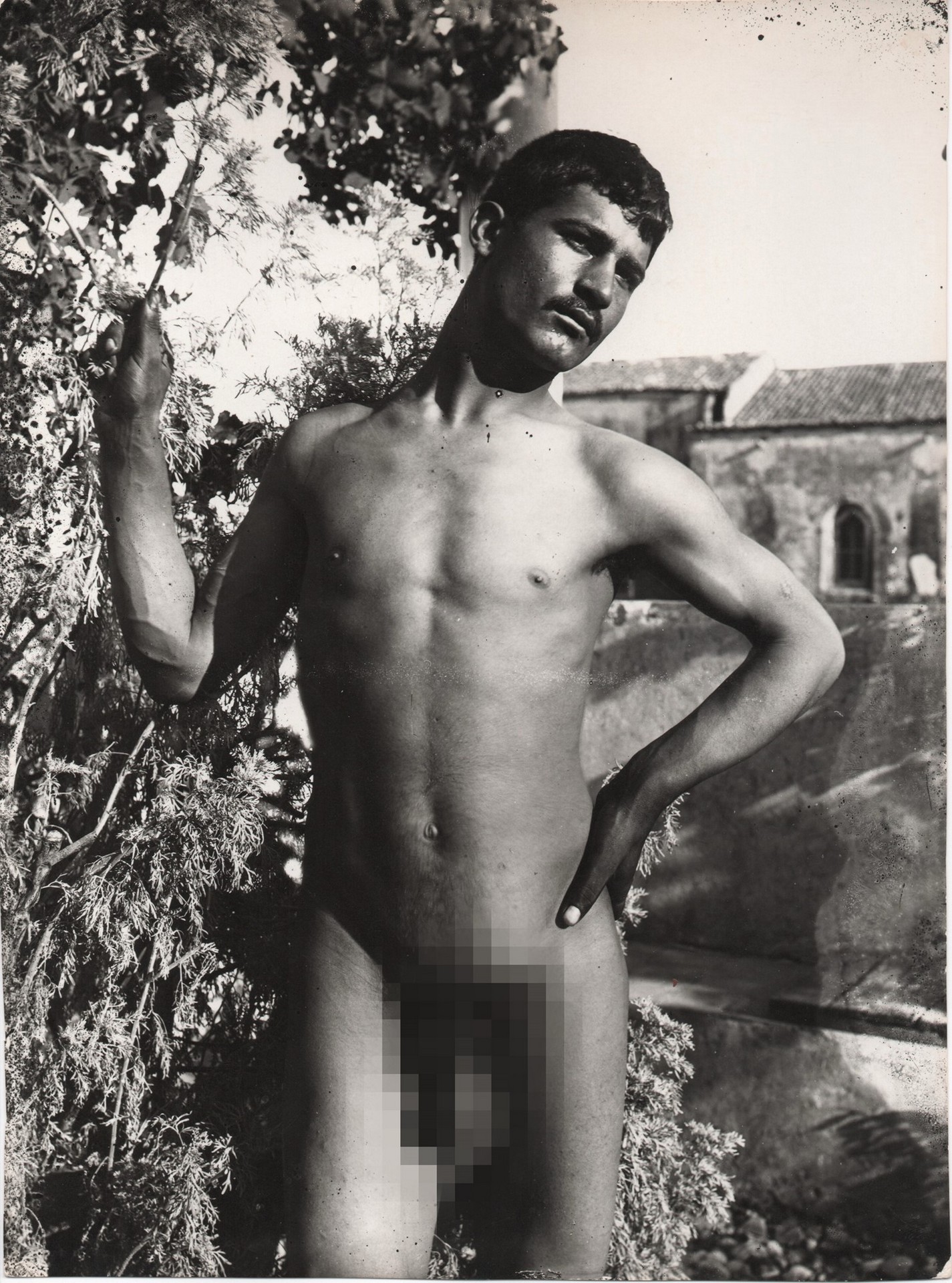 Von Gloeden, Wilhelm (Wismar 1856-Taormina 1931) - Nudo di uomo Cm 17,1x23,4 Fotografia N.468, timbrata sul retro