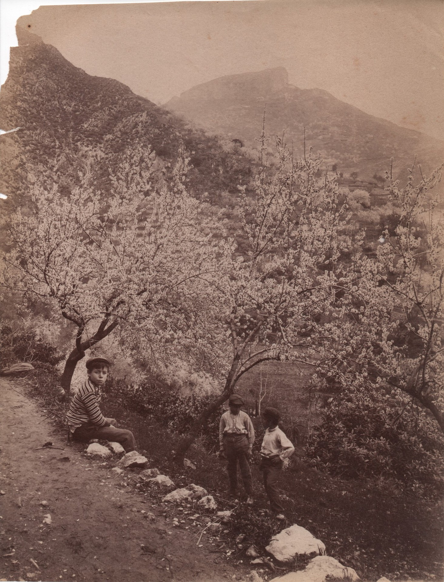 Von Gloeden, Wilhelm (Wismar 1856-Taormina 1931) - Veduta con pastori Cm 16,5x21,6 2637
