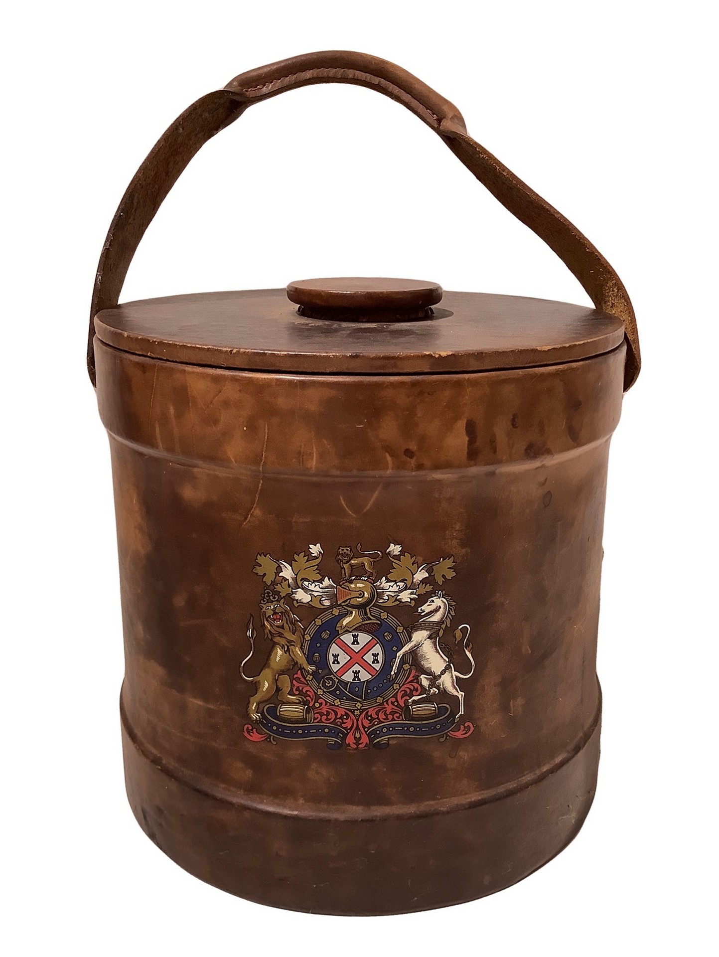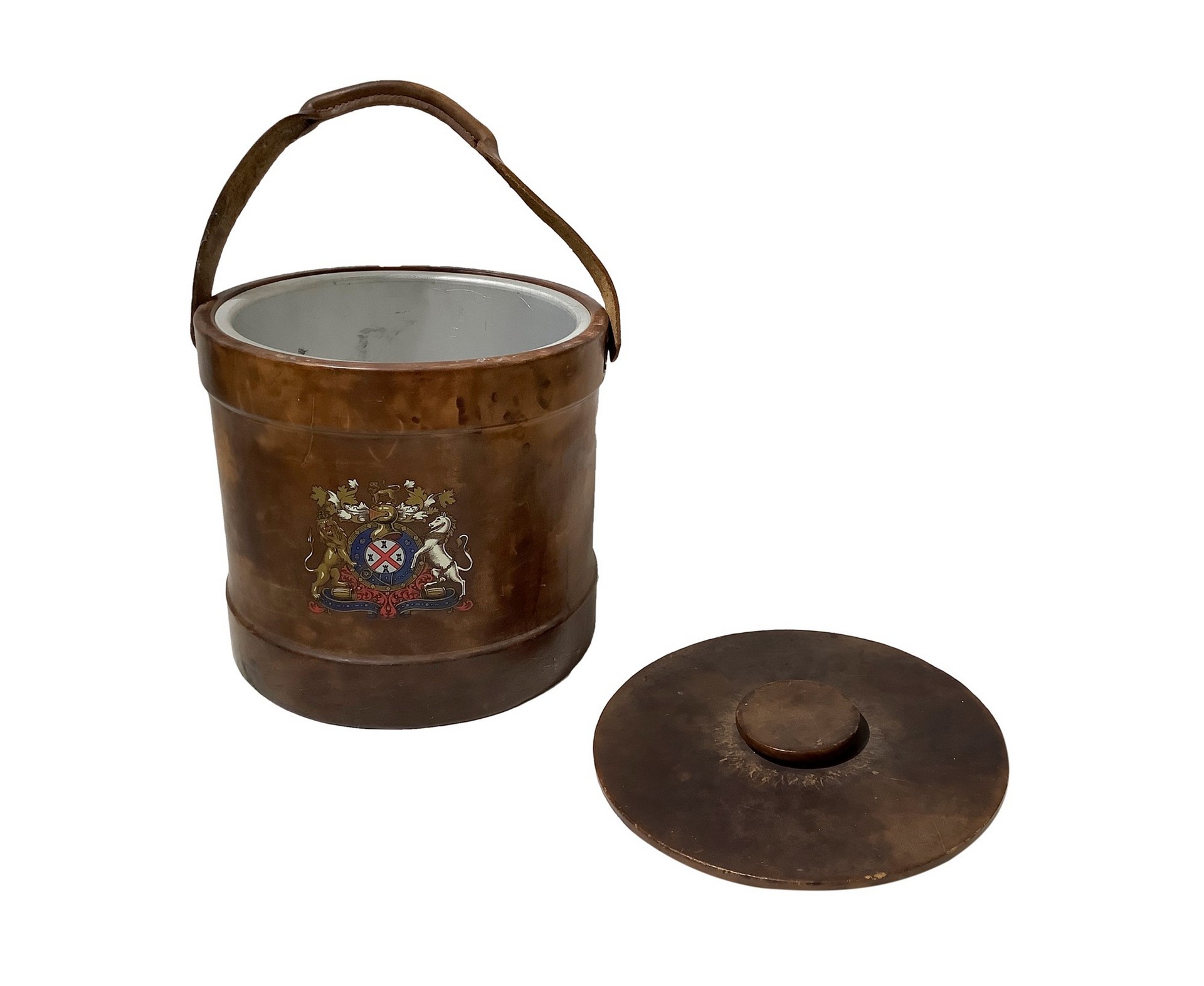 Lotto 243 | Ghiacciaia thermos h 32 cm, d 32 cm Modellata in pelle con