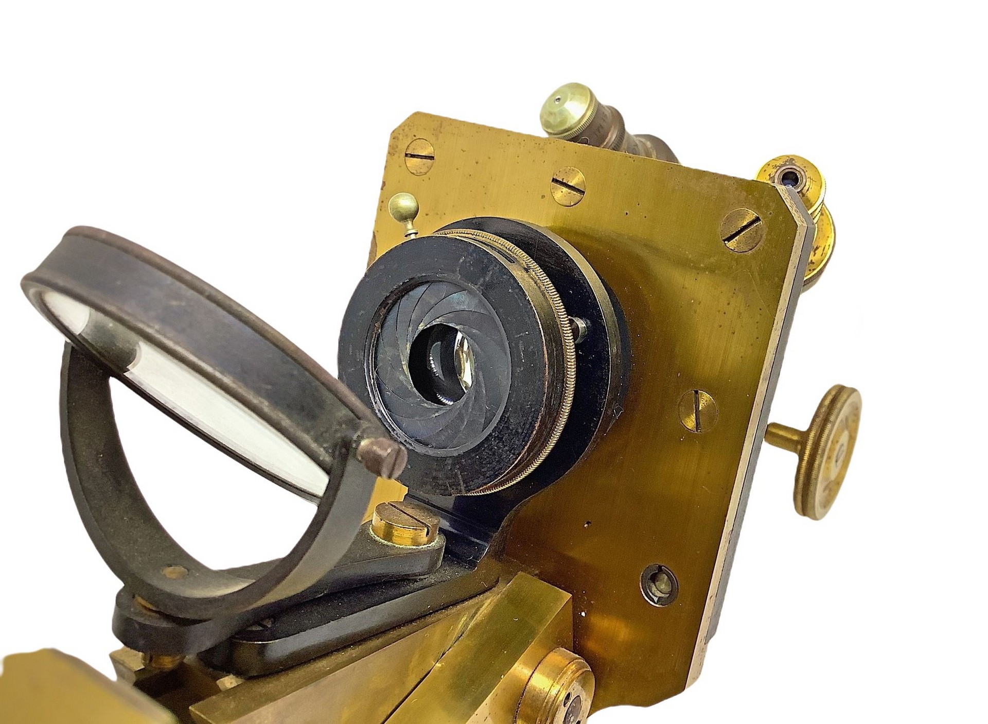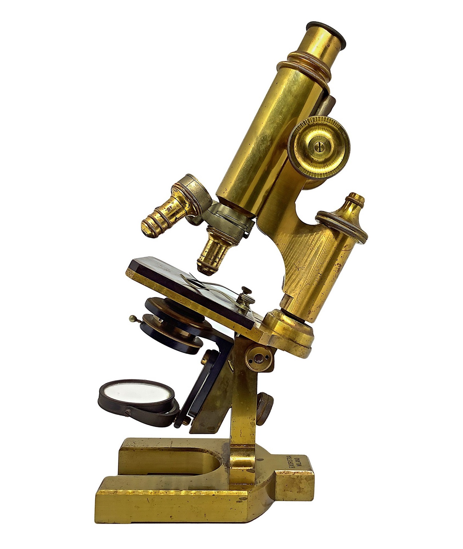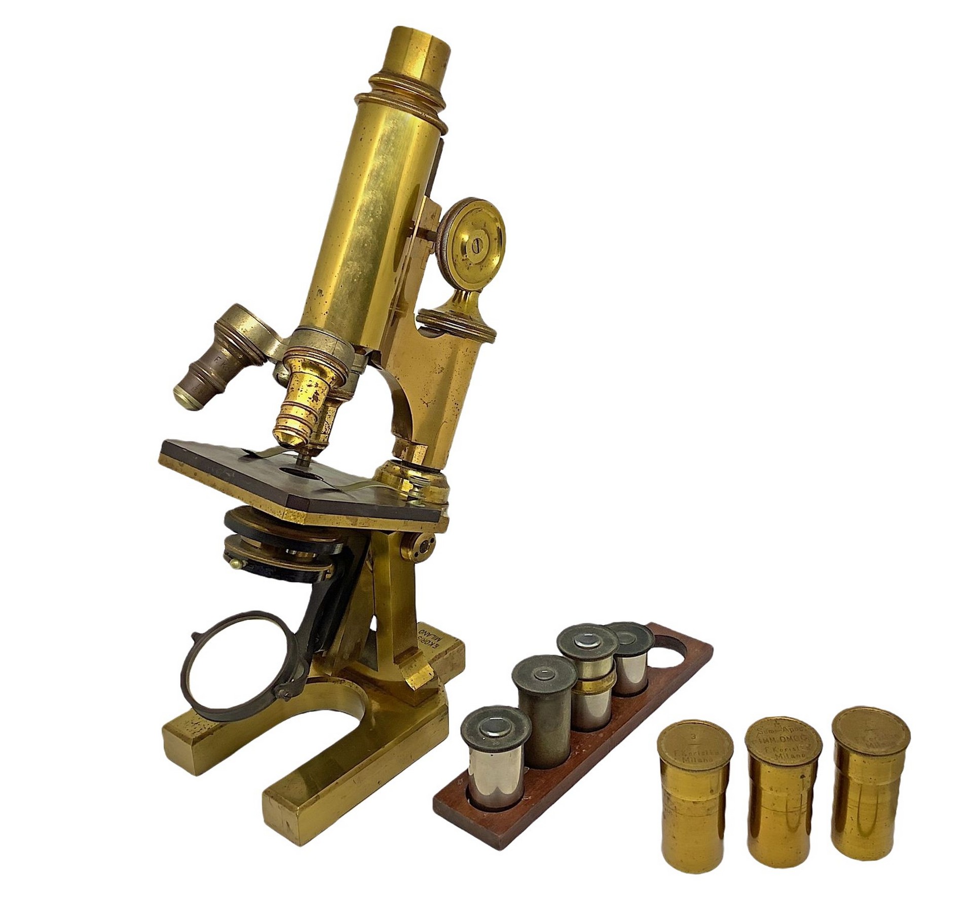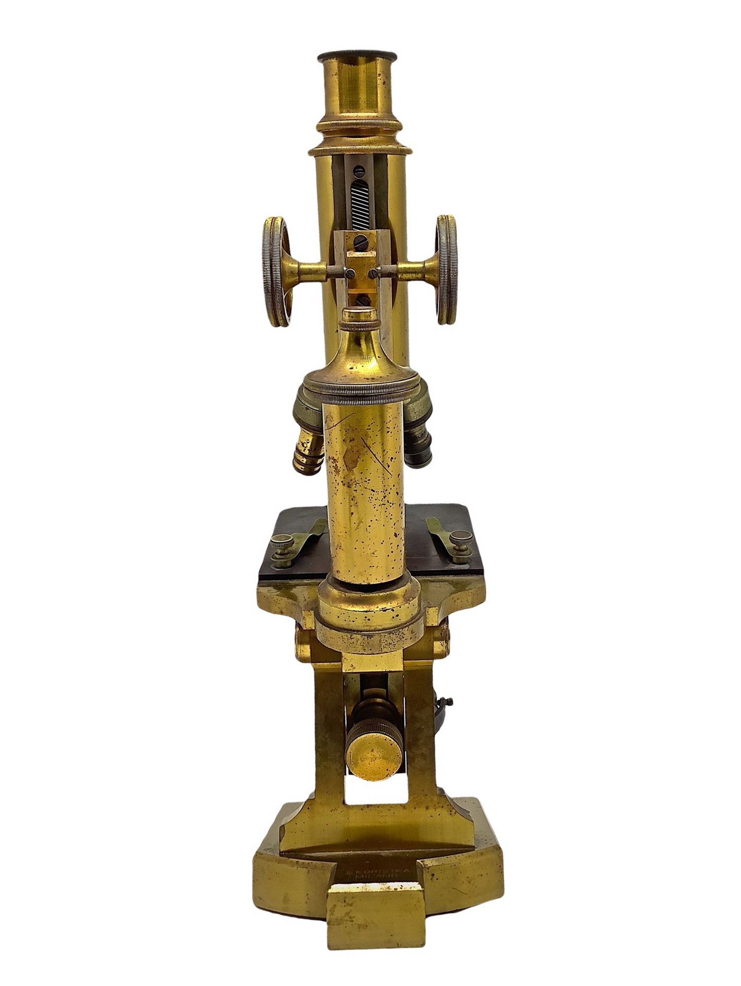 F.lli Koristka - Microscopio in metallo dorato, con vari acc