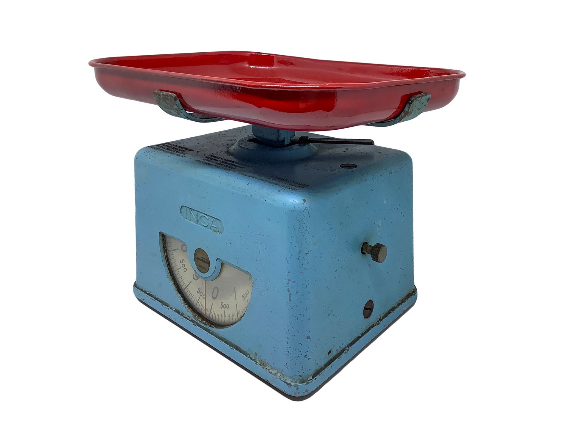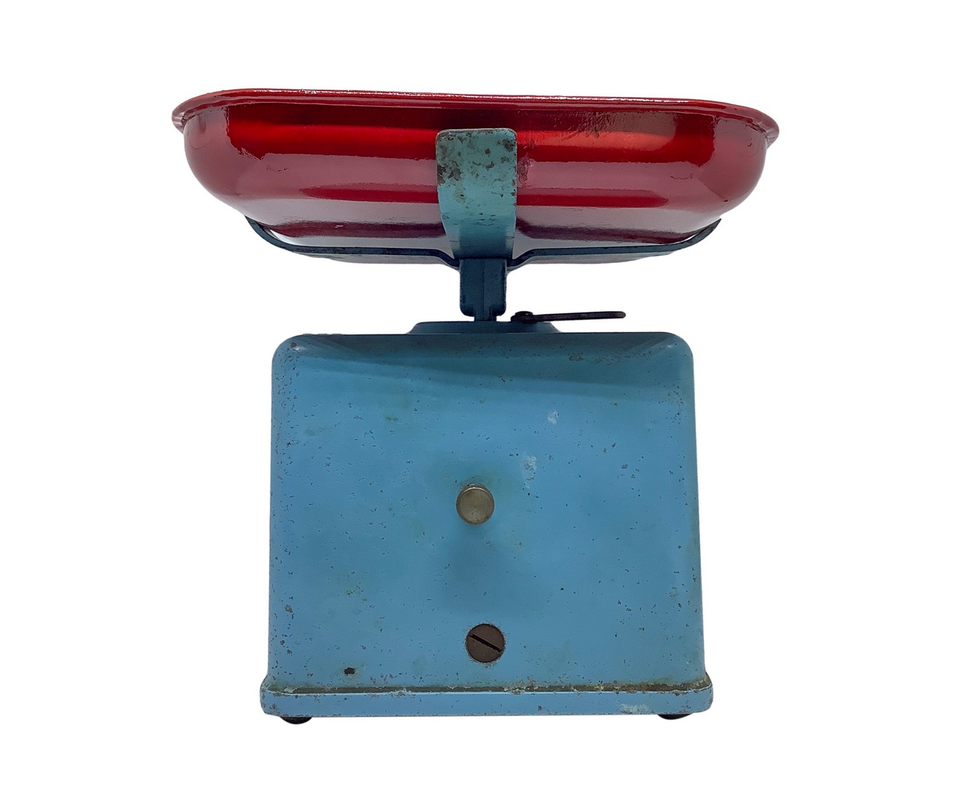 Bilancia vintage Inca, laccata azzurra h 17 cm, base 16x12