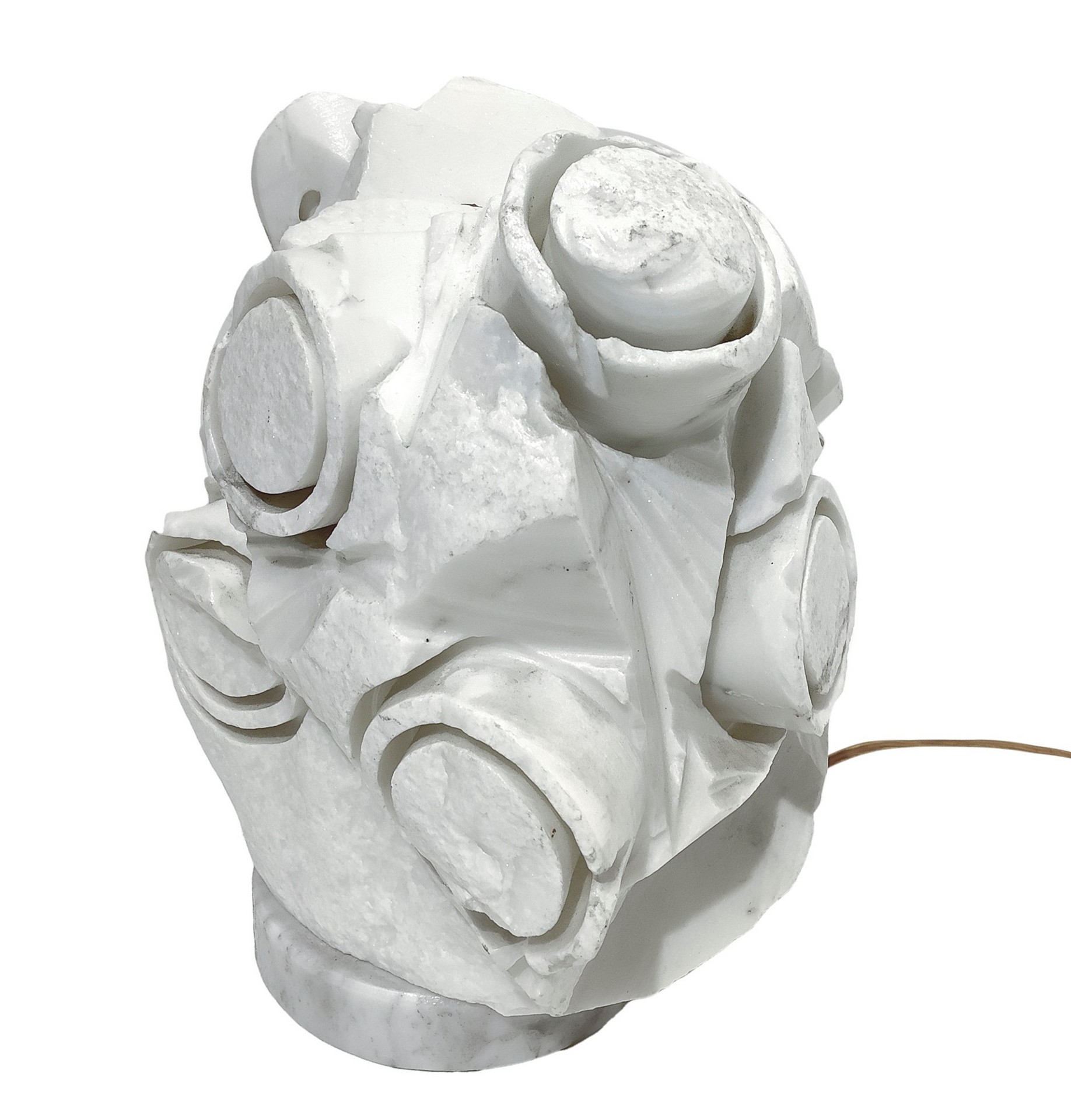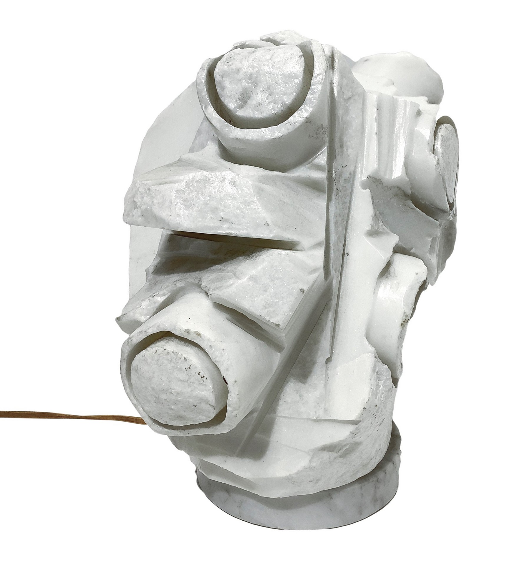 Lampada da tavolo scultura in resina nei toni del bianco Produzione italiana. Gusto informale.