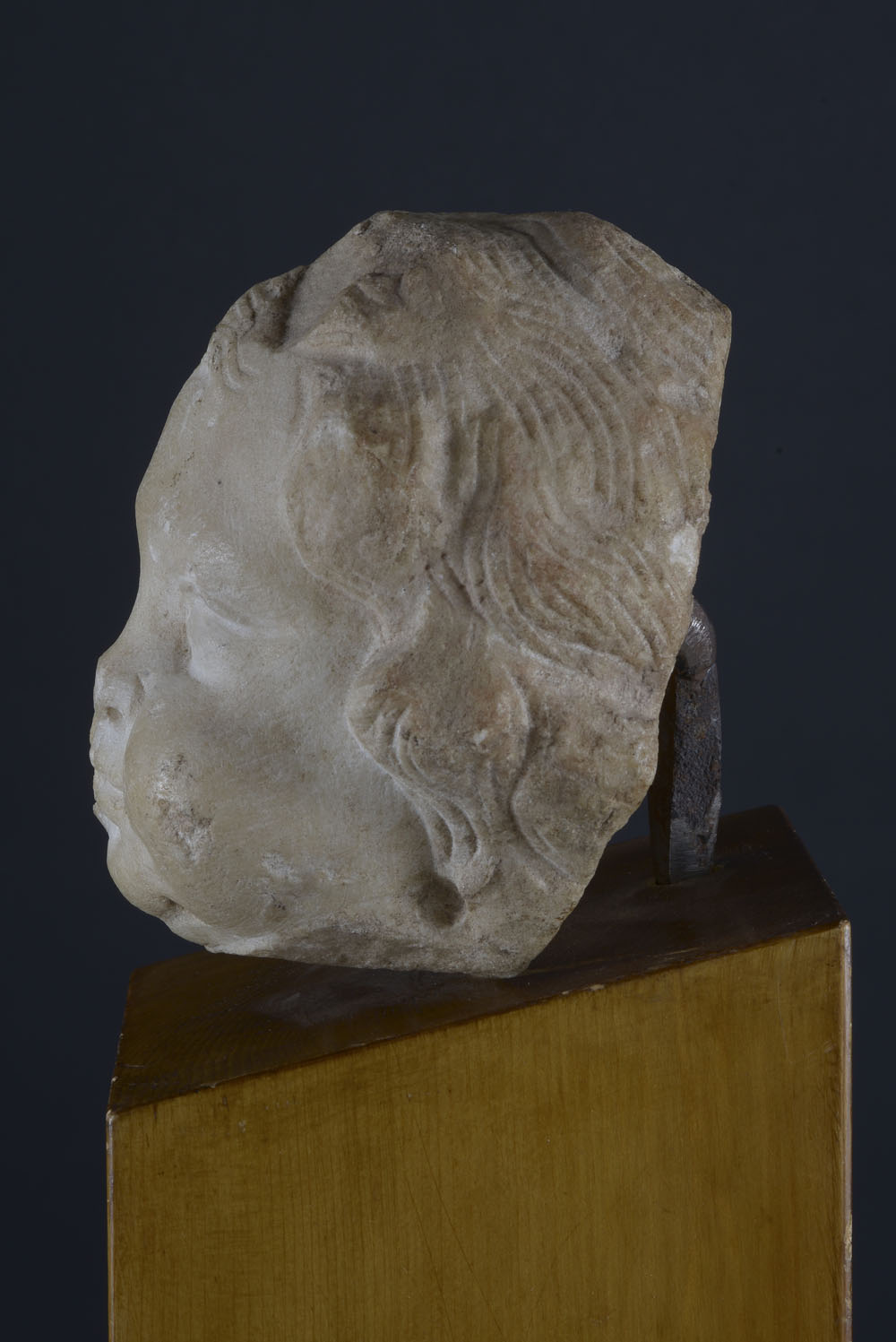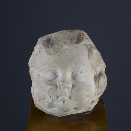 Italia XVI secolo Testa di bimbo Marmo bianco cm. 11