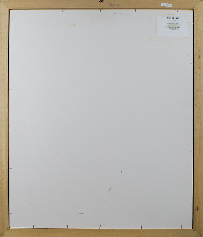 Gianni Dessì, Senza titolo, 2002,Olio su carta giapponese, Dim. 56x45, Opera accompagnata da autentica dell' Artista su foto, Opera pubblicata su catalogo " Cento Artisti per l'Acquila " a pag. 21, Al fronte datato e firmato in basso al centro