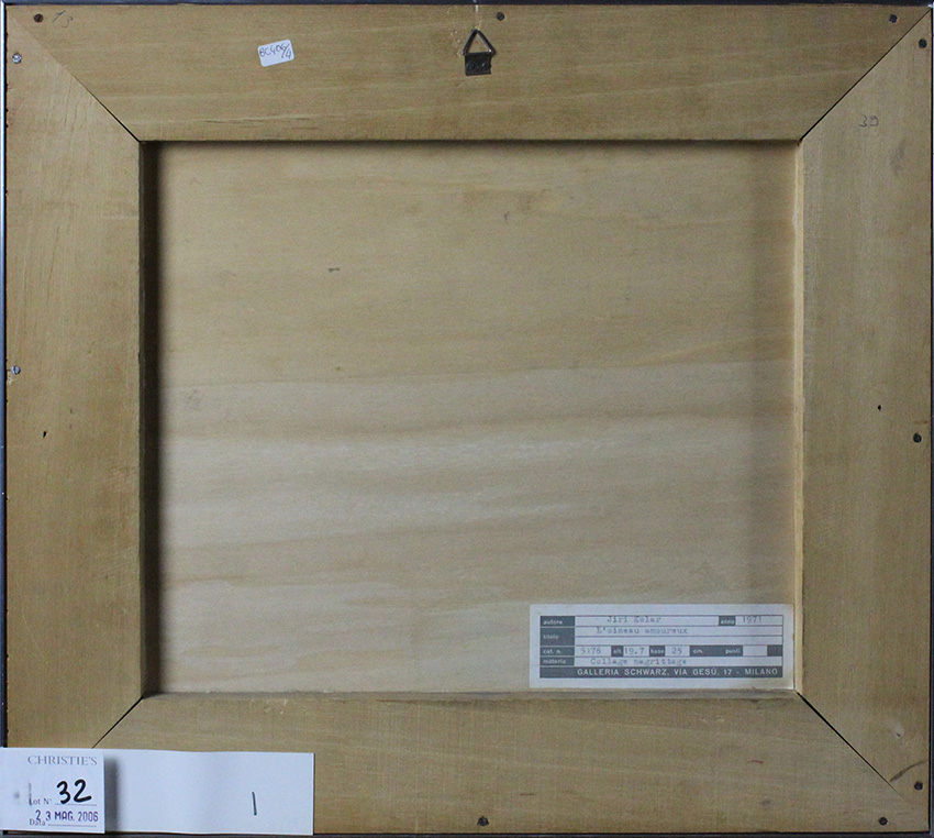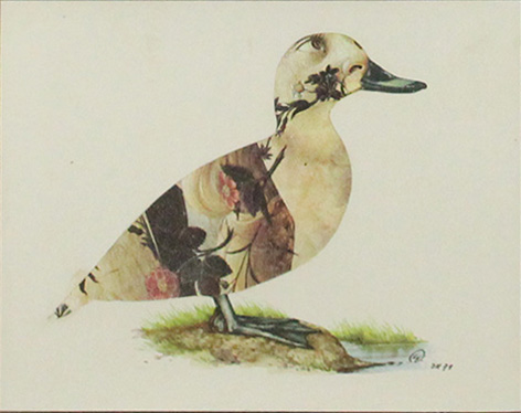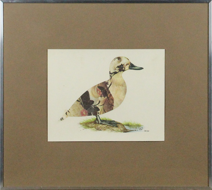 Jiri Kolar, "L'oiseau amoureux", 1971, Collage magrittage, Dim. 19.7x25, Al verso: etichetta "Galleria Schwarz", Al fronte: datato e firmato in basso a destra
