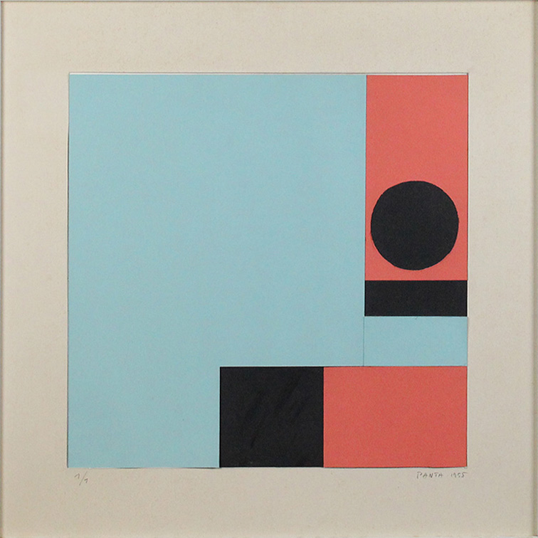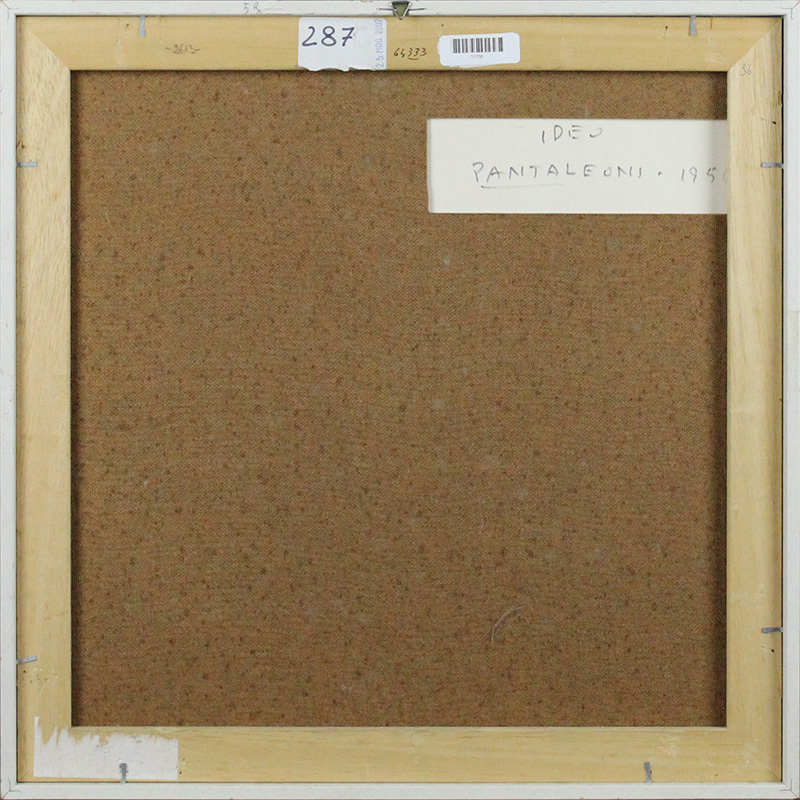 Ideo Pantaloni, Senza titolo, 1955, Collage su cartoncino, Dim. 35x35 su cartone di cm. 48x48, Esemplare unico, Sul verso: data e firma, sul fronte numero 1/1 in basso a sinistra, datato e firmato in basso a destra
