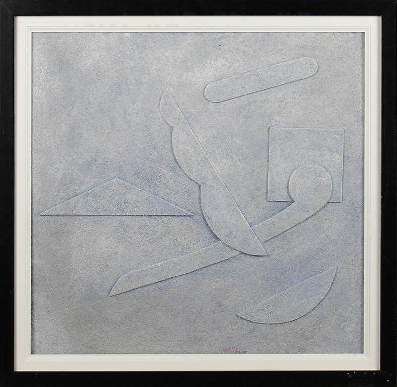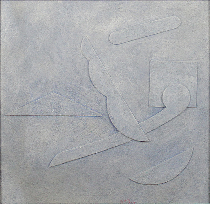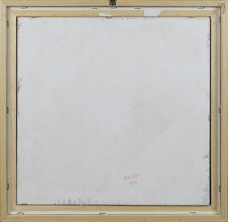 Lucio Del Pezzo, Molti segni, 1970, Collage e acrilico su tavola, Dim. 41x41, Opera archivita presso l'Archivio "Lucio Del Pezzo"con n° 15646, Al verso: data e firma, Al fronte: firmato in basso al centro