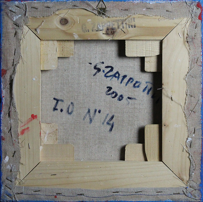 Gianfranco Zappettini, Senza titolo, 2005, Olio su tela, Dim.40x40, Opera archiviata presso l'Archivio "G. Zappettini", Al verso: timbro di "G. Zappettini", data e firma