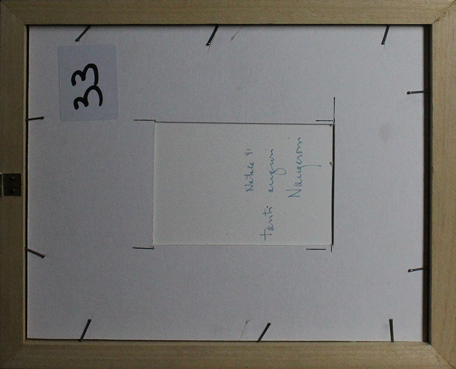 Carlo Nangeroni, Senza titolo, 1991, Tecnica mista su cartoncino, Dim. 10x15, Al verso: dedica, datato e firmato, Al fronte: datato e firmato in basso a destra
