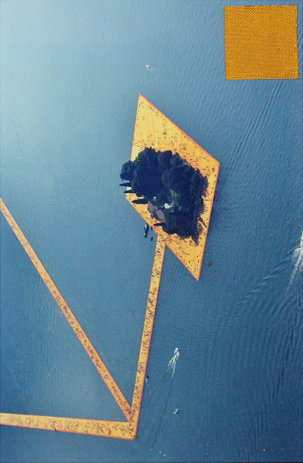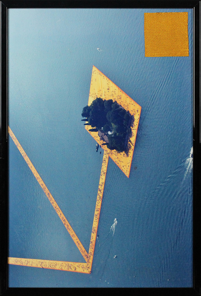 Christo and Jeanne-Claude, Senza titolo, 2016, Opera grafica con pezzo autentico di istallazione, 30x40