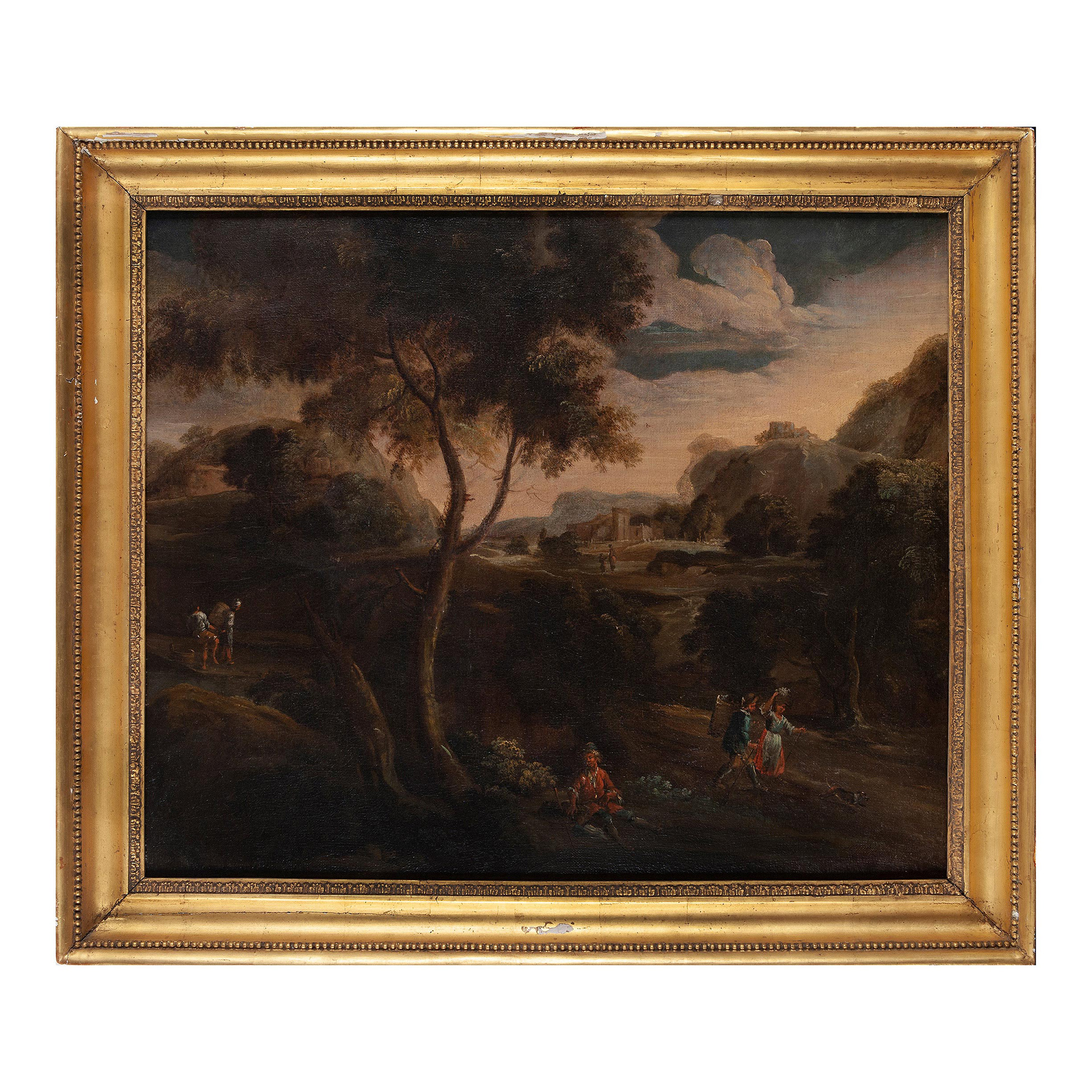 Lotto 53 | Pittore napoletano del XVII secolo, Paesaggio con viandanti