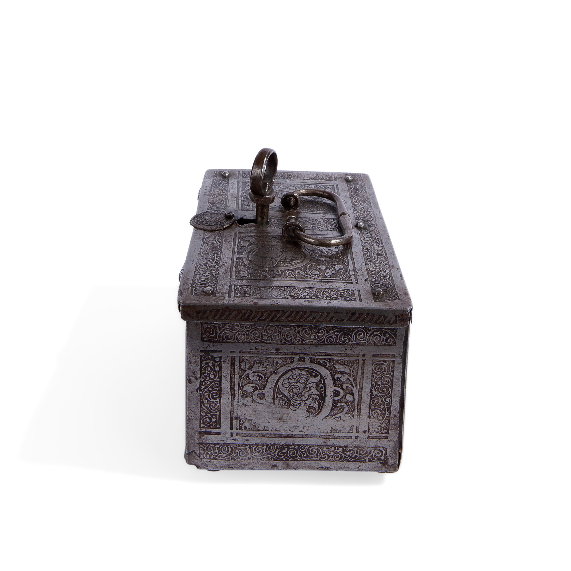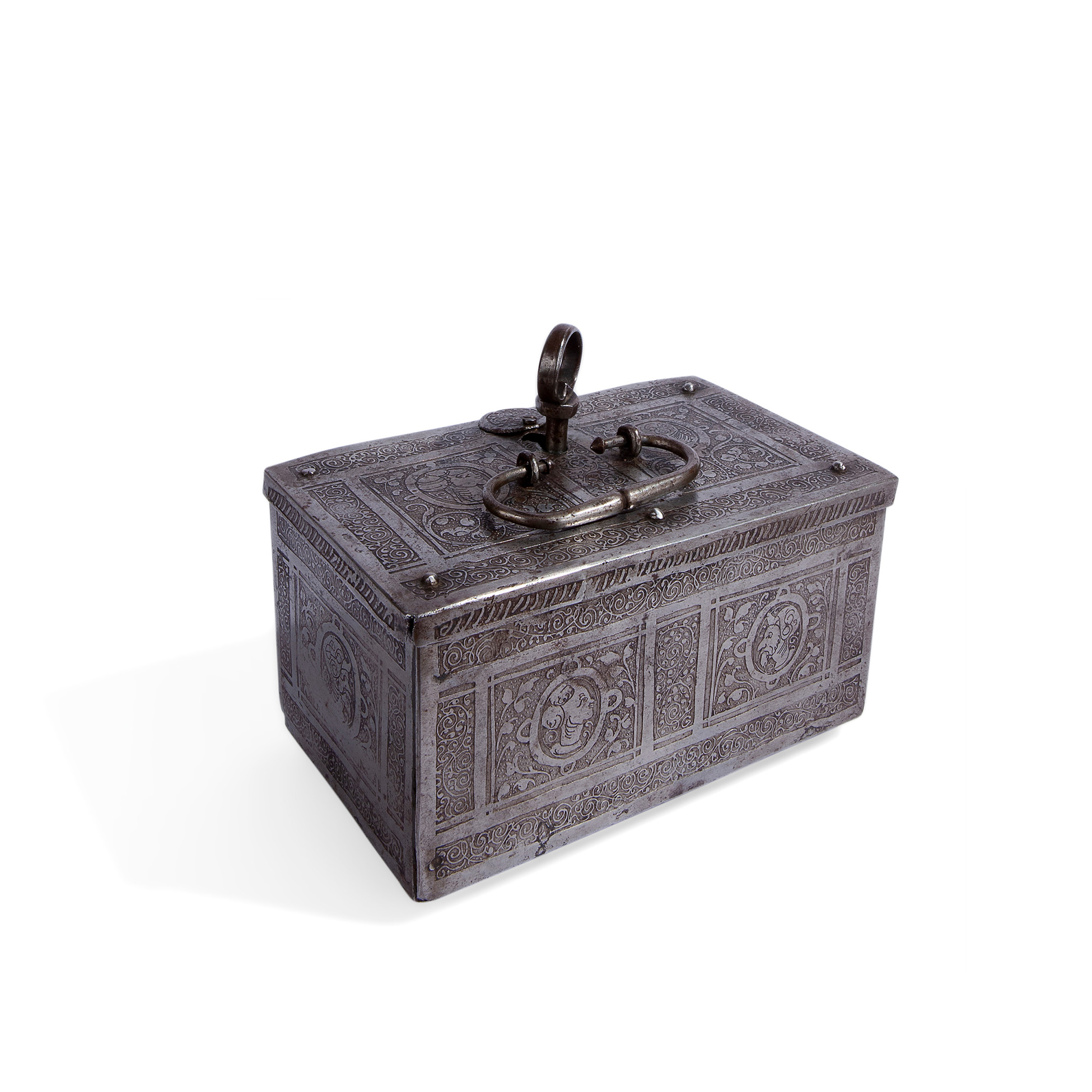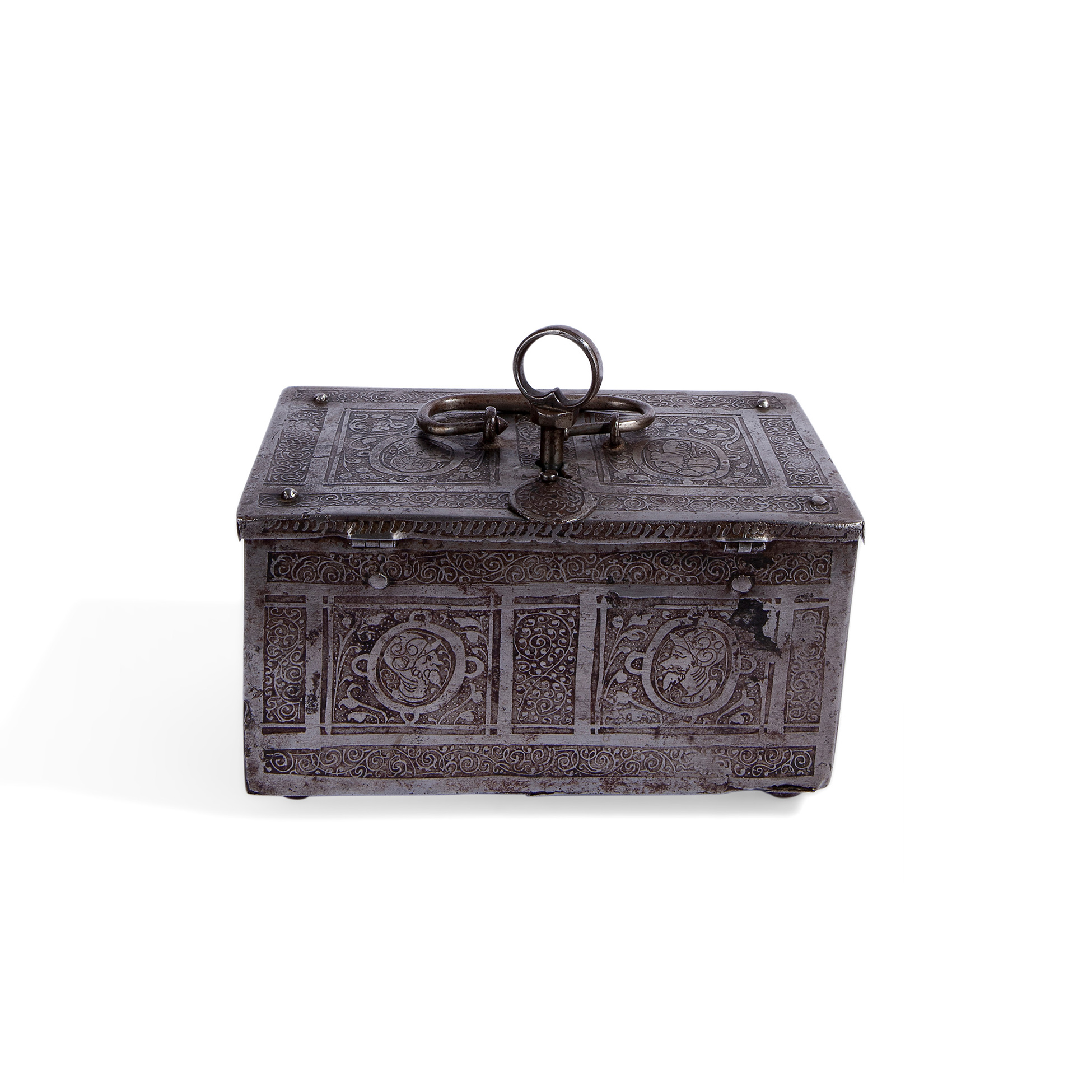 Lotto 77 | Piccolo forziere in ferro forgiato e inciso all'acquaforte, Germania inizi XVII secolo