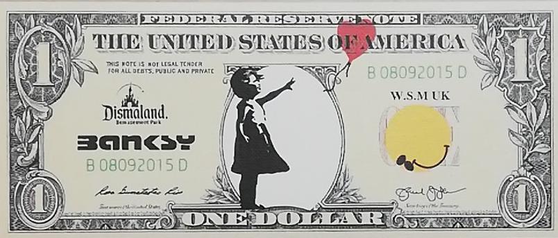 banconota da un dollaro serigrafata, cm 10,5x5,5