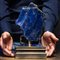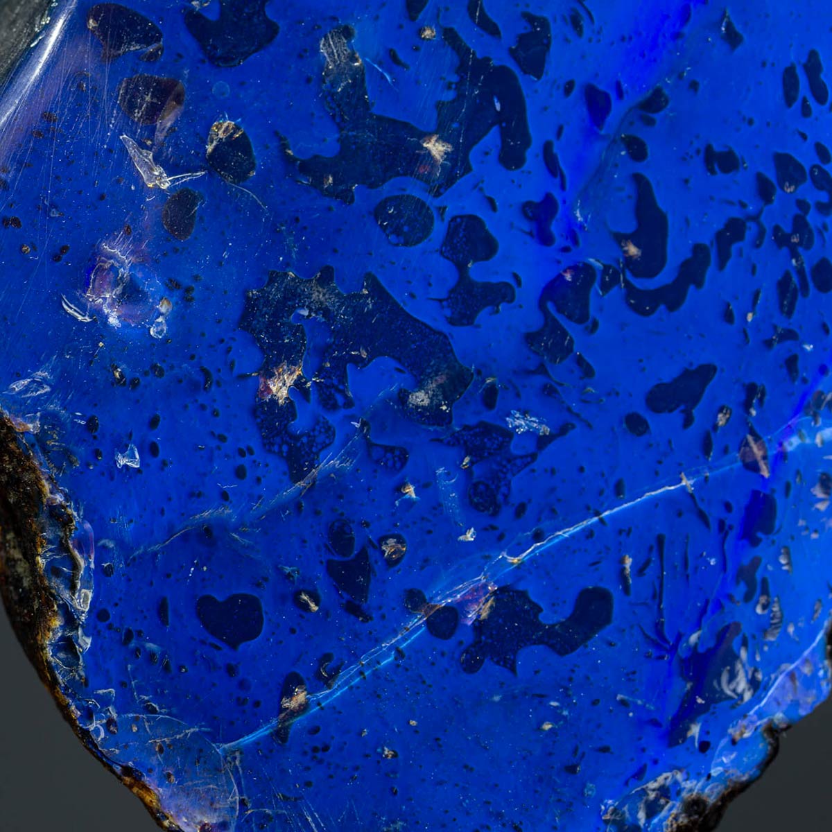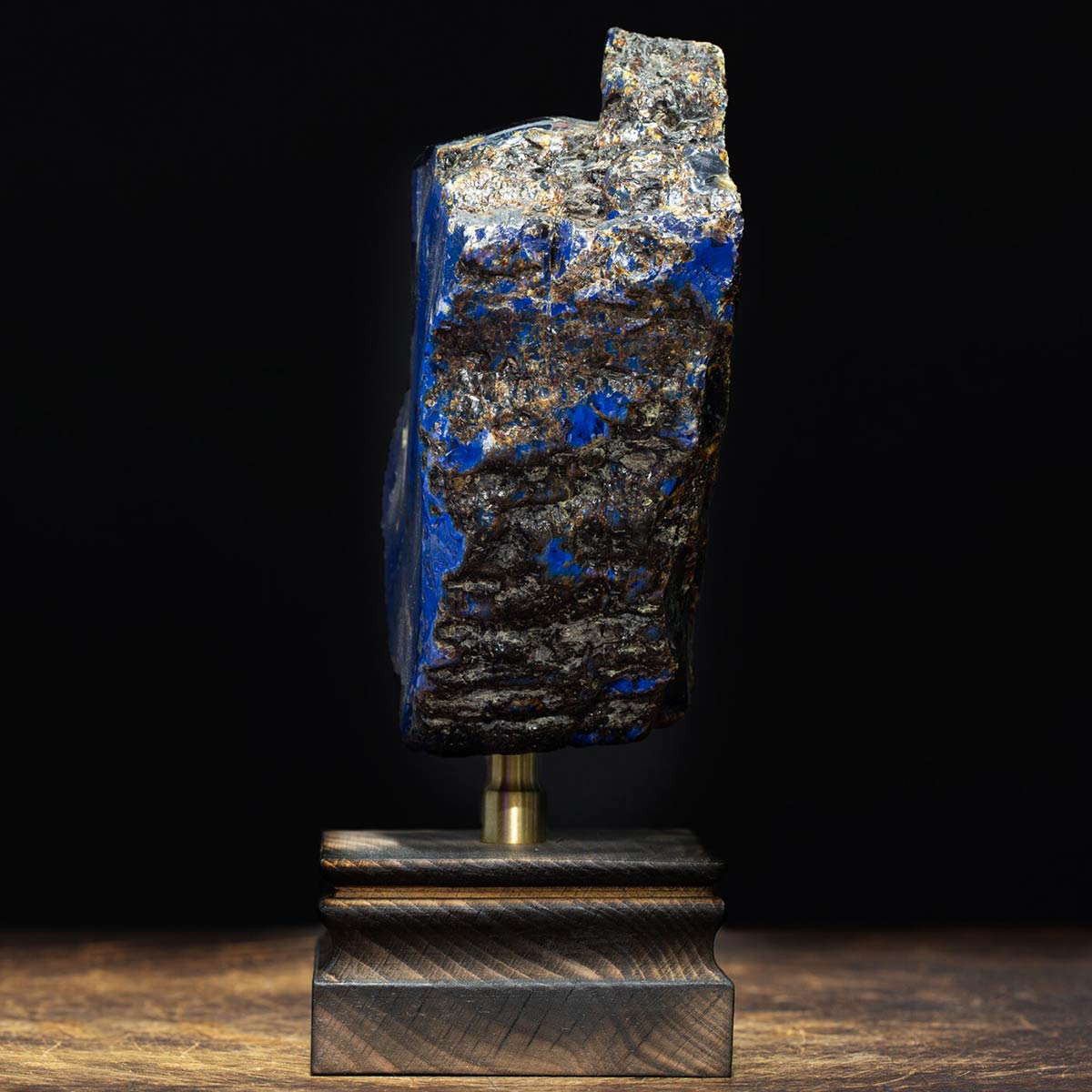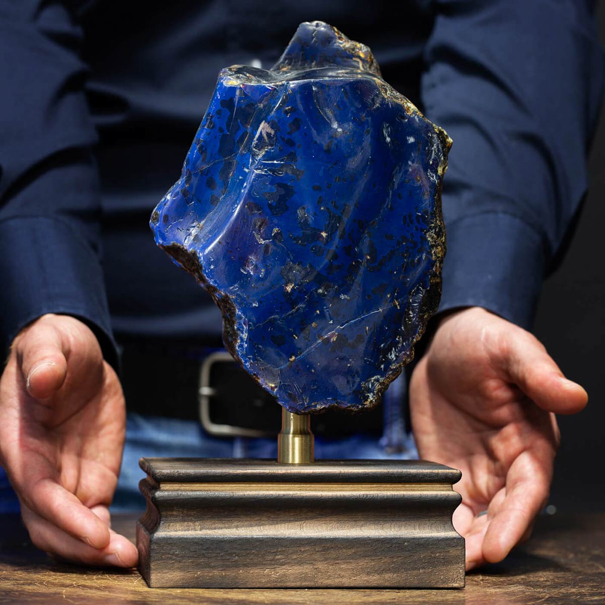 Ambra Blu, isola di Sumatra, su base in legno e ottone. 180 x 140 x 75 mm. 1090 gr
