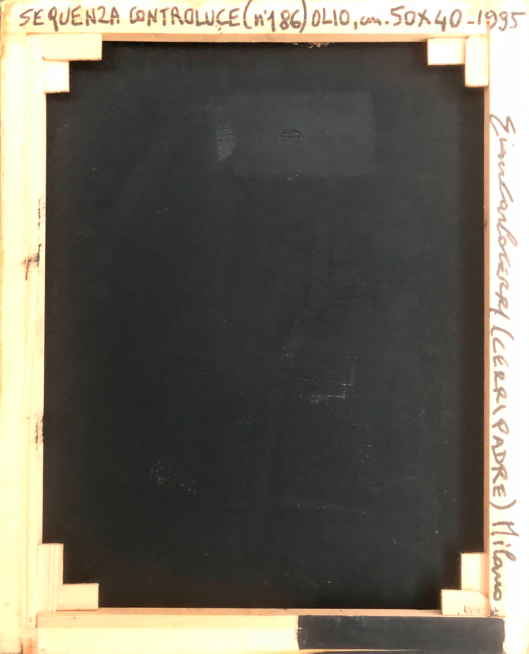 Firma, titolo, datazione, tecnica, misure e località (Milano) al retro