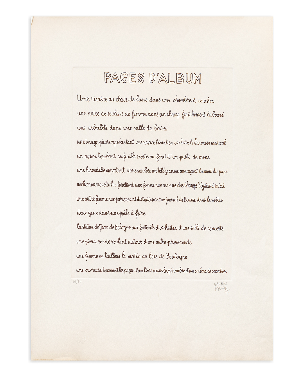 Firma, numerazione (Esemplare 35/70) e timbro a secco dello stampatore al fronte di ciascuna
