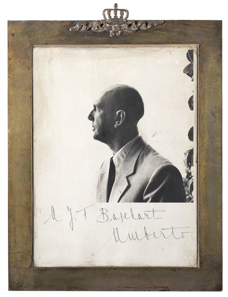 Lot comprising two photographs with inscription to Jackie. One of Queen Sofia and King Juan Carlos of Spain and one of Prince Umberto II of Savoy