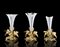 A group of three gilt bronze planters with crystal vases. Numerals engraved on the bases (h. cm 30) (defects and breaks)