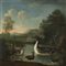 School of the 19th-century "Pond with ducks and birds" oil on canvas (cm 90x90) (restorations)