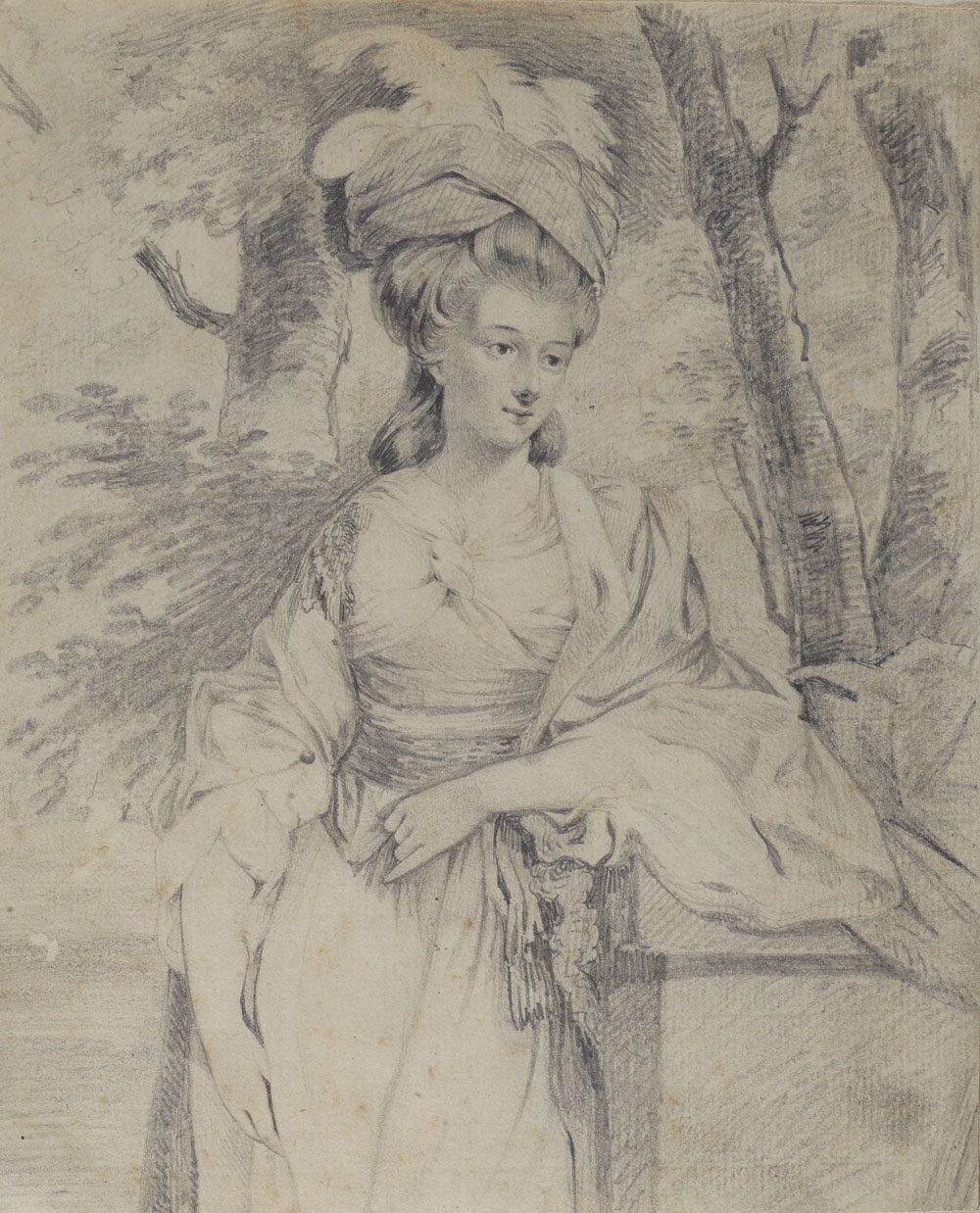 Scuola inglese del XVIII secolo Dama nel parco Matita di grafite su carta mm....