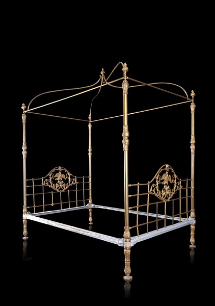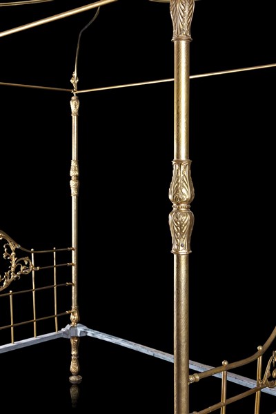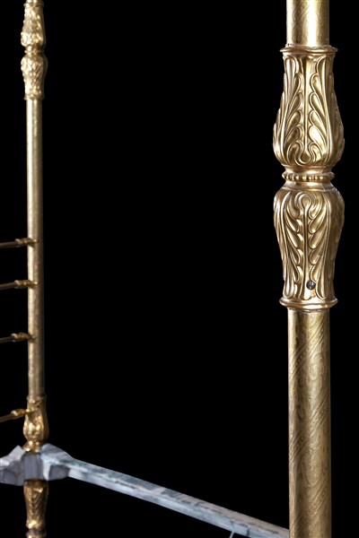 Letto a baldacchino in bronzo con testata e pediera decorate da fregi con Fenic
