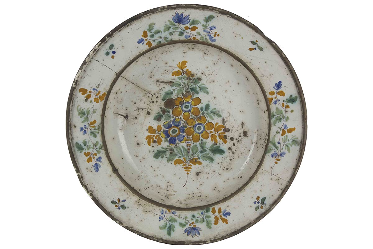 Bacile in maiolica policroma a motivi floreali