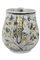 Caraffa in maiolica policroma con decorazione avvolgente su smalto azzurrognolo a rameggi fra i quali nelle due parti è dipinto un Vaso che ricorda vagamente un kantaros etrusco con grandi anse e decorazione di gusto classico. Vaso molto bello e di grande qualità.