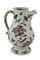 Caffettiera di forma elegante, priva di coperchio, con beccuccio e manico in opposizione in maiolica policroma decorata a margherite e rameggi su fondo bianco.