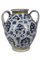 Anfora a corpo ovoide e stretto collo, con due manici, in maiolica blu su bianco decorata a tappeto con palmetta persiana e rosette.