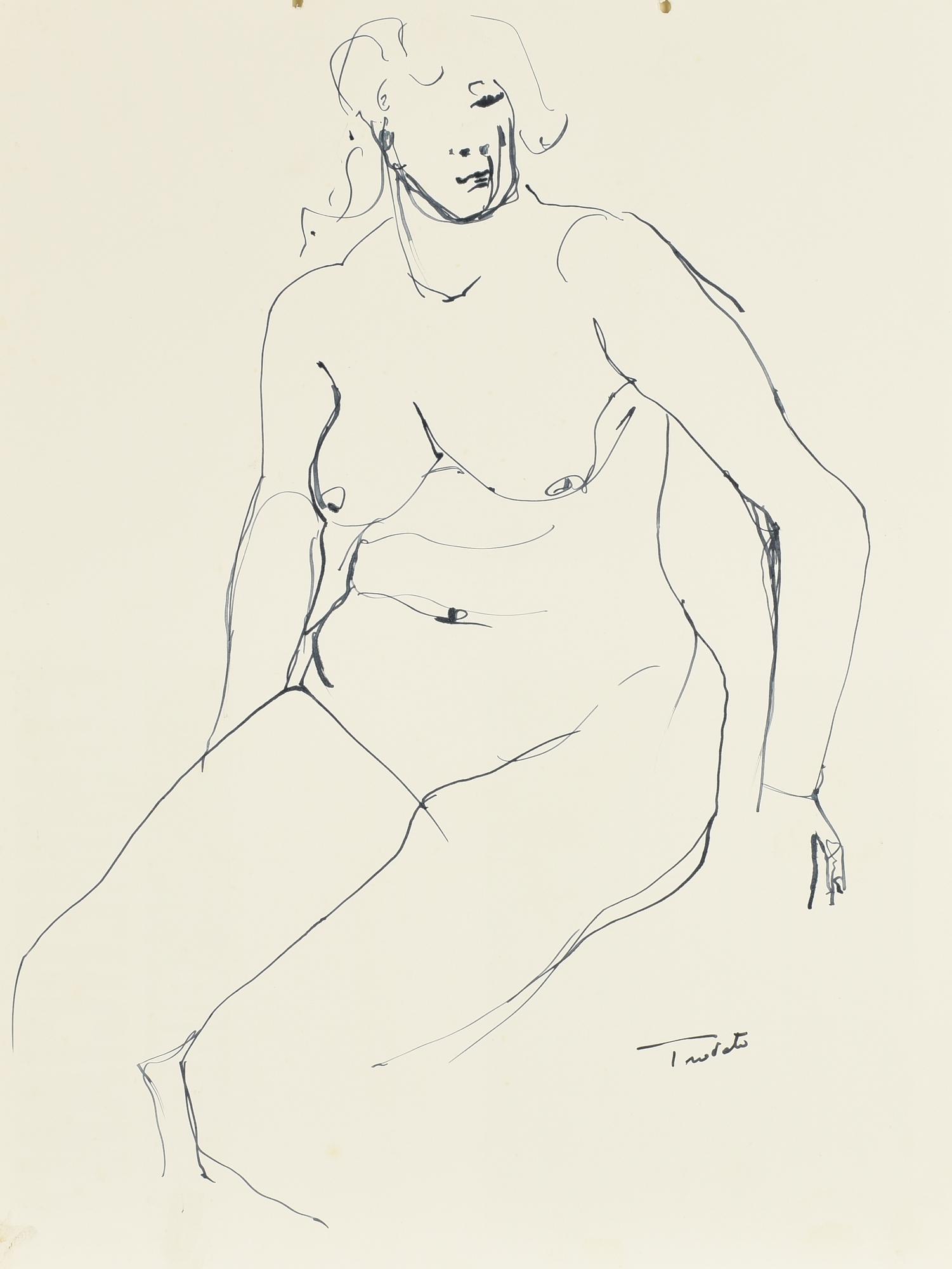 Sebastiano Trovato NUDO SEDUTO pennarello su carta, cm 45x34 firma L'opera...