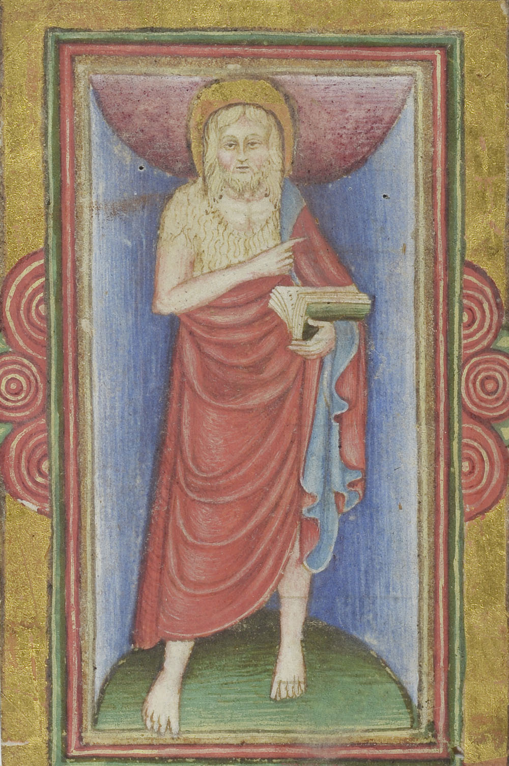 Scuola lombarda del XV secolo San Giovanni Battista Tempera su pergamena mm....