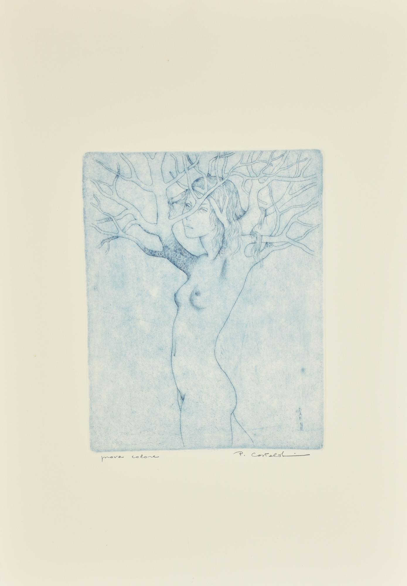 Placido Castaldi DAFNE puntasecca su carta, battuta cm 24x19, su foglio cm...
