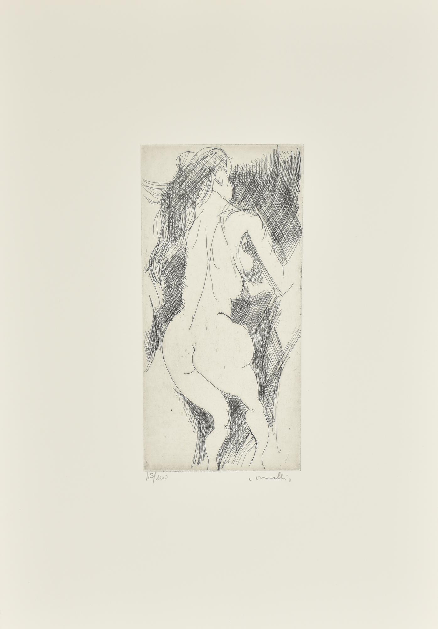 Carlo Morelli STUDIO DI NUDO acquaforte su carta, battuta cm 25x12, su foglio...