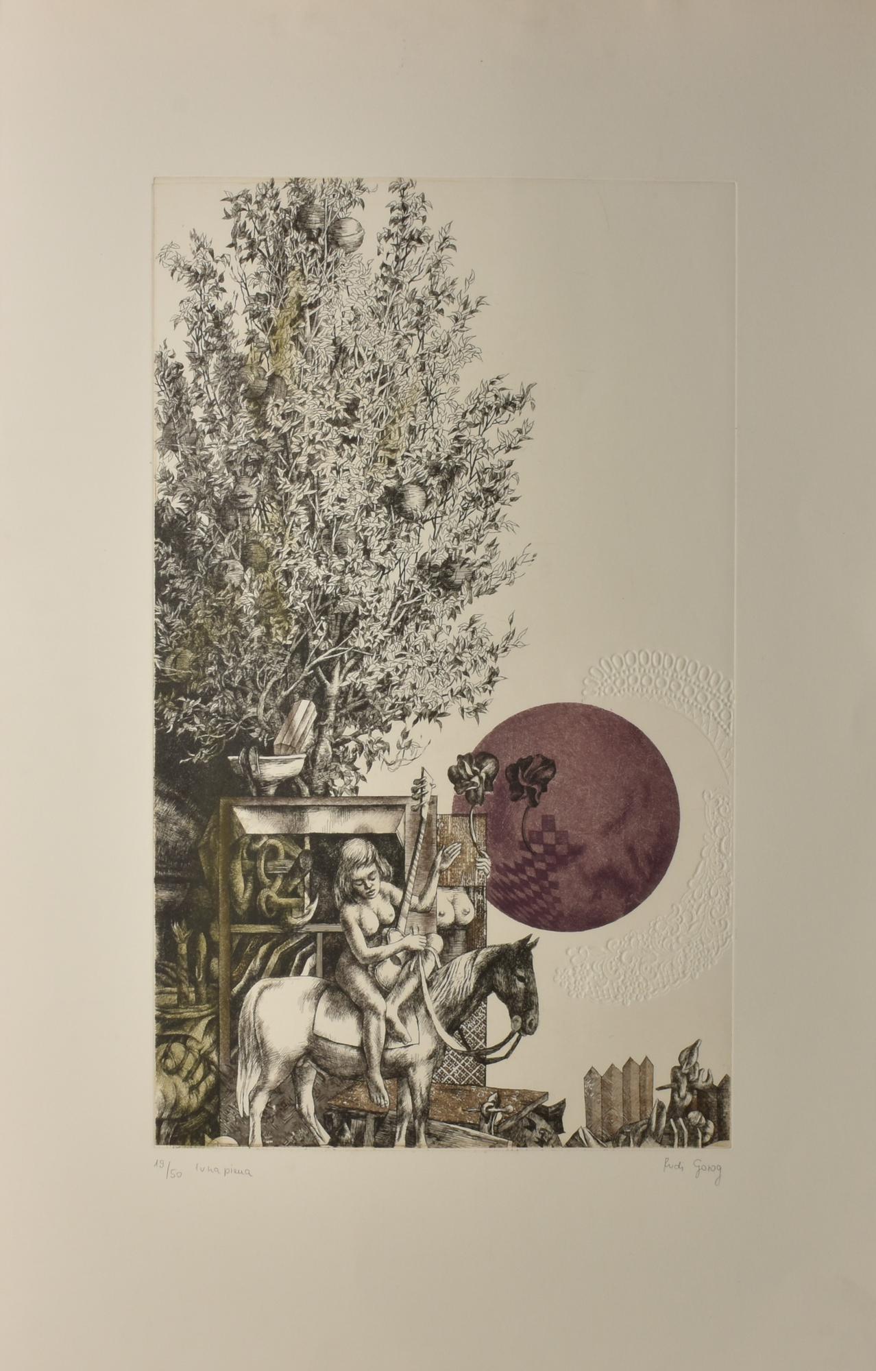 Rudi Gorog LUNA PIENA incisione su carta, battuta cm 65x39, su foglio cm...