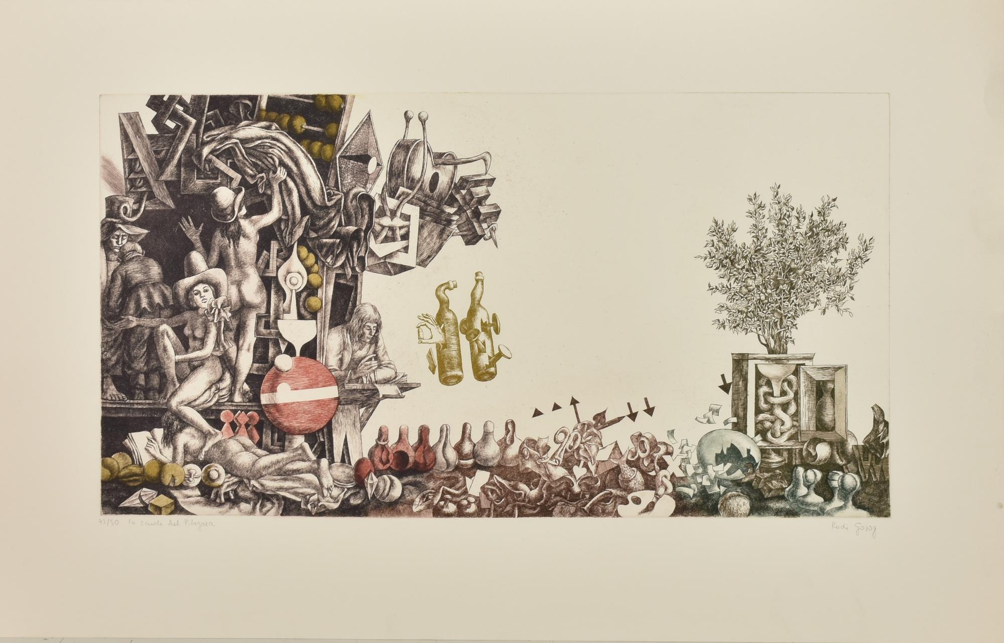 Rudi Gorog LA SCUOLA DEL PITAGORA incisione su carta, battuta cm 44x79,5, su...