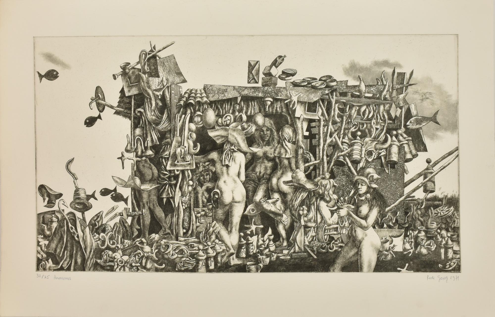 Rudi Gorog AMAZONAS incisione su carta, battuta cm 44x79,5, su foglio cm...