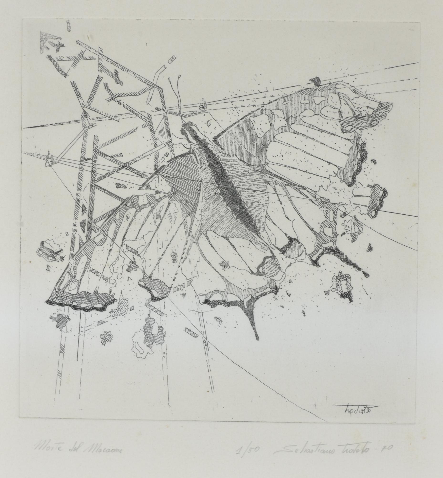 Sebastiano Trovato MORTE DEL MACAONE incisione su carta, cm 31x29 (lastra cm...