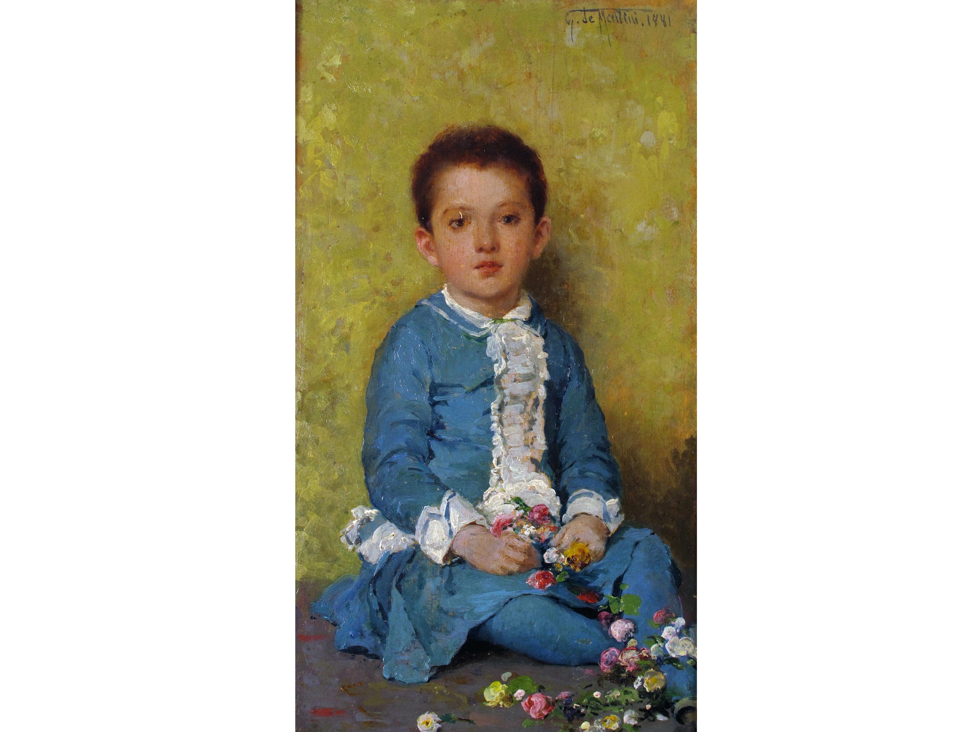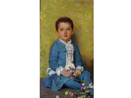 Gaetano de Martini (Benevento 1840-Napoli 1917) Bambino Olio su tavoletta Firmato Datato 1881 Misure 22,5x12,3 cm