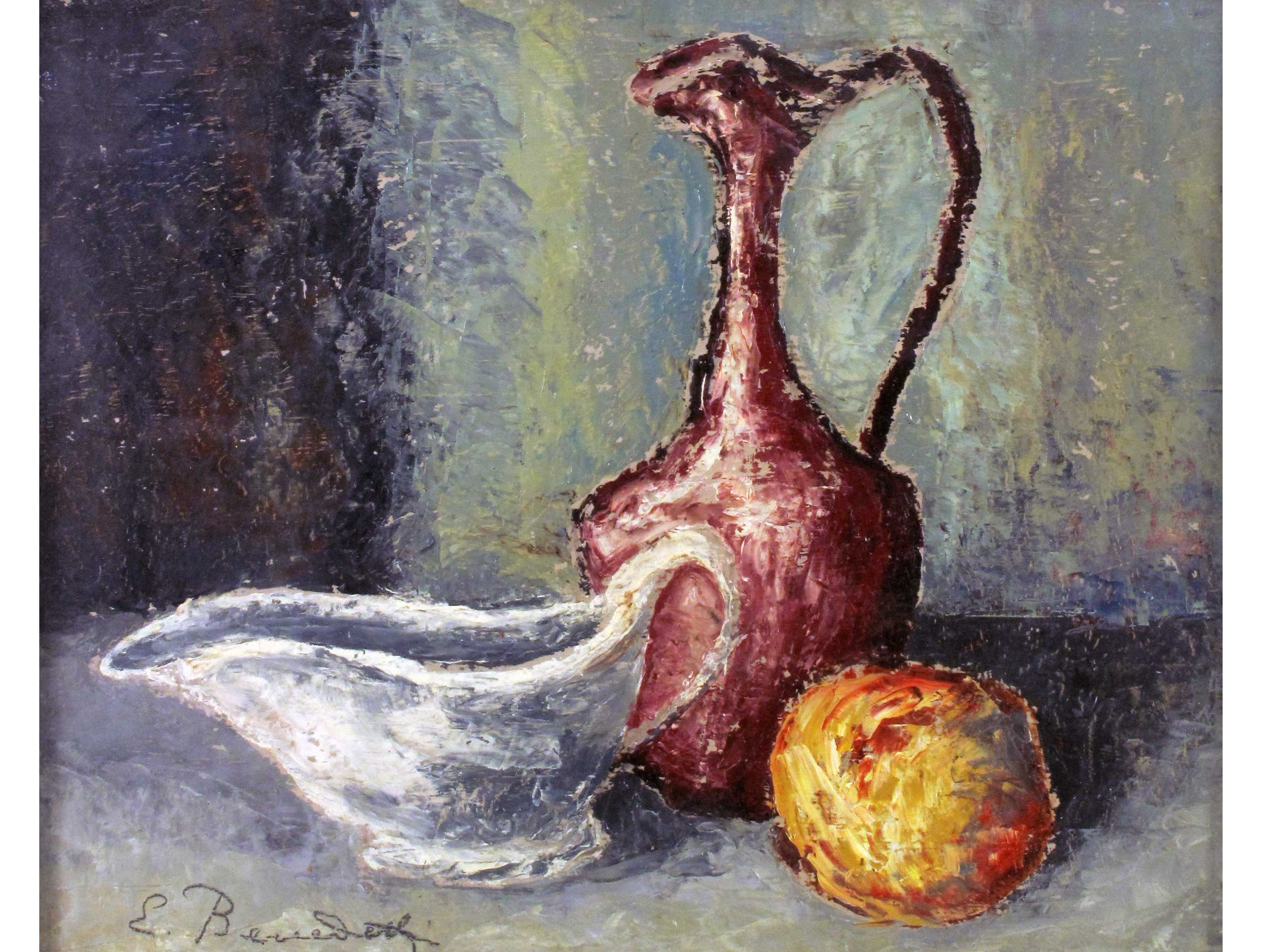 E. Benedetti XX secolo Natura morta Olio su tavoletta Firmato Misure 27x34 cm