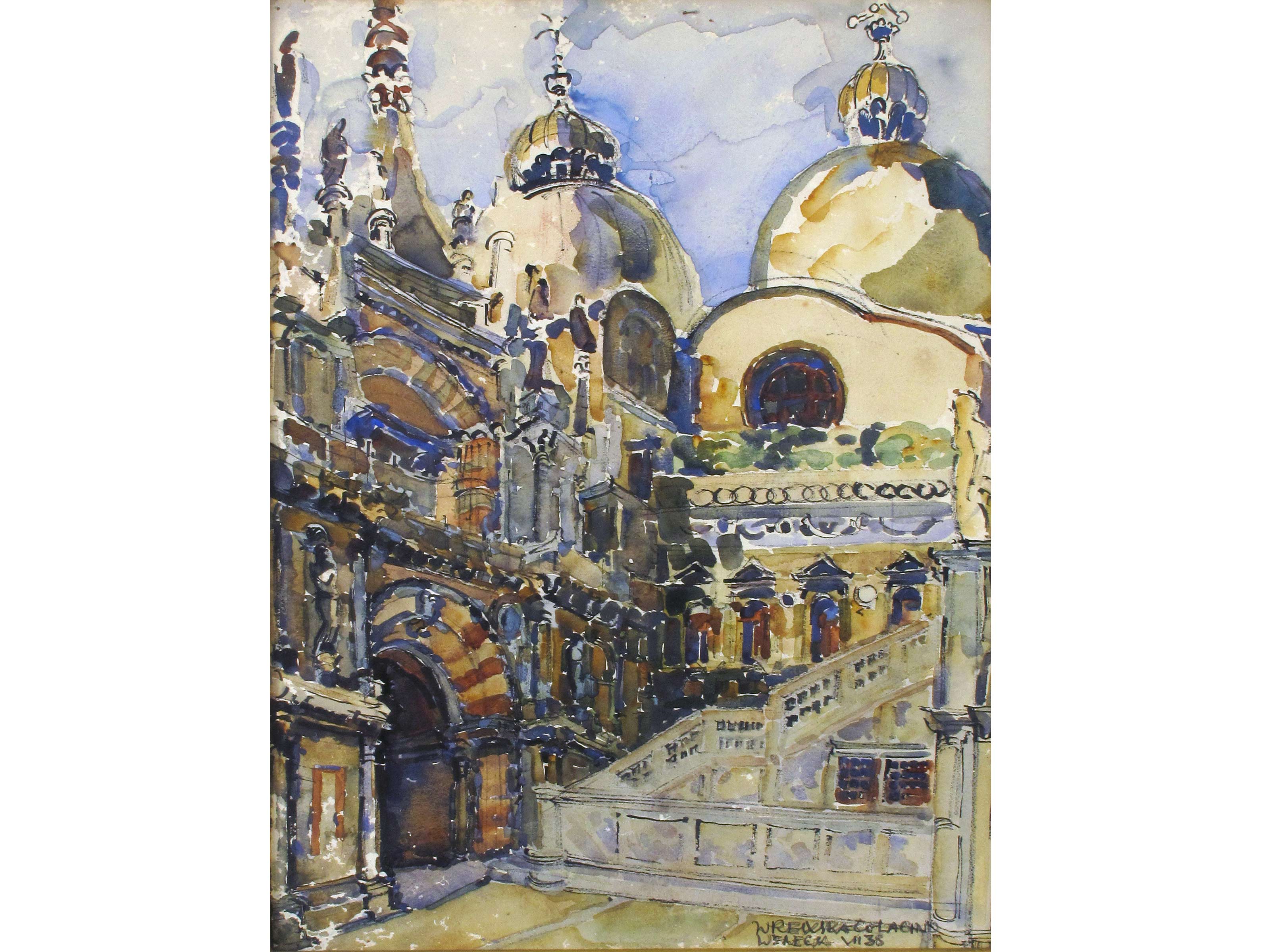 Wanda Rewska Colacino (1907) Venezia Acquarello su carta Firmato Datato VII...