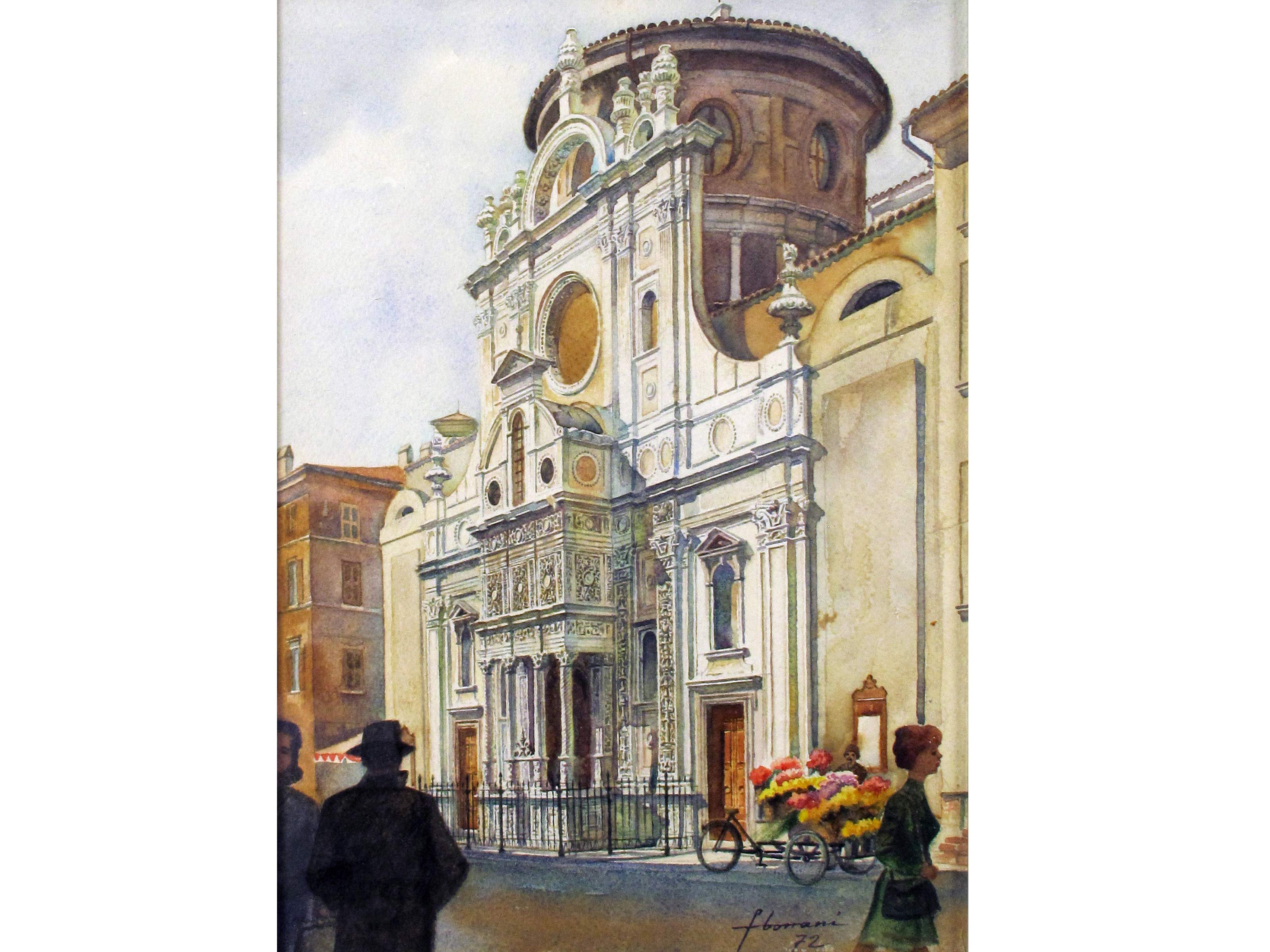 Fausto Borrani (1925) Chiesa di Santa Maria dei Miracoli Acquarello su carta Firmato Datato 1972 Misure 38x27,5 cm