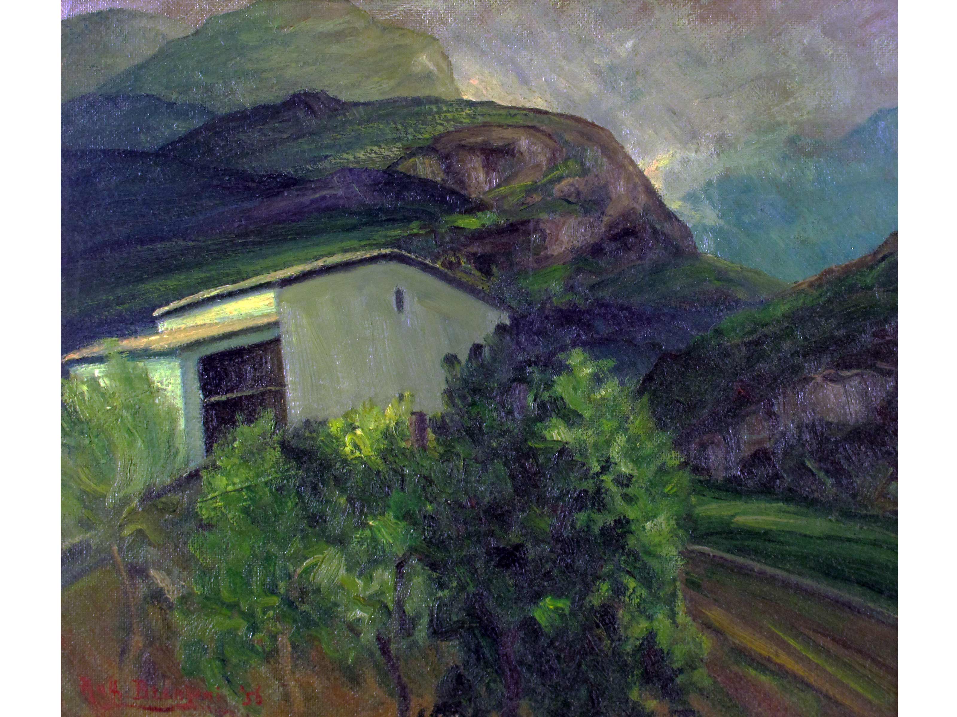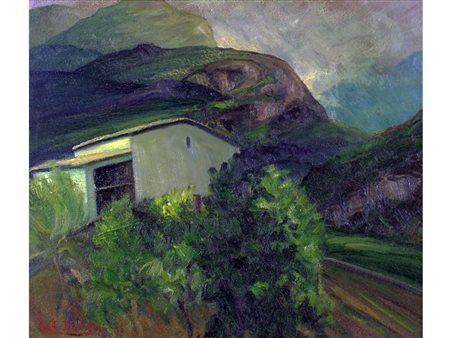 Raffaele Brenzoni (1890-1971) Case al tramonto Olio su tavola Firmato Misure 35x41 cm