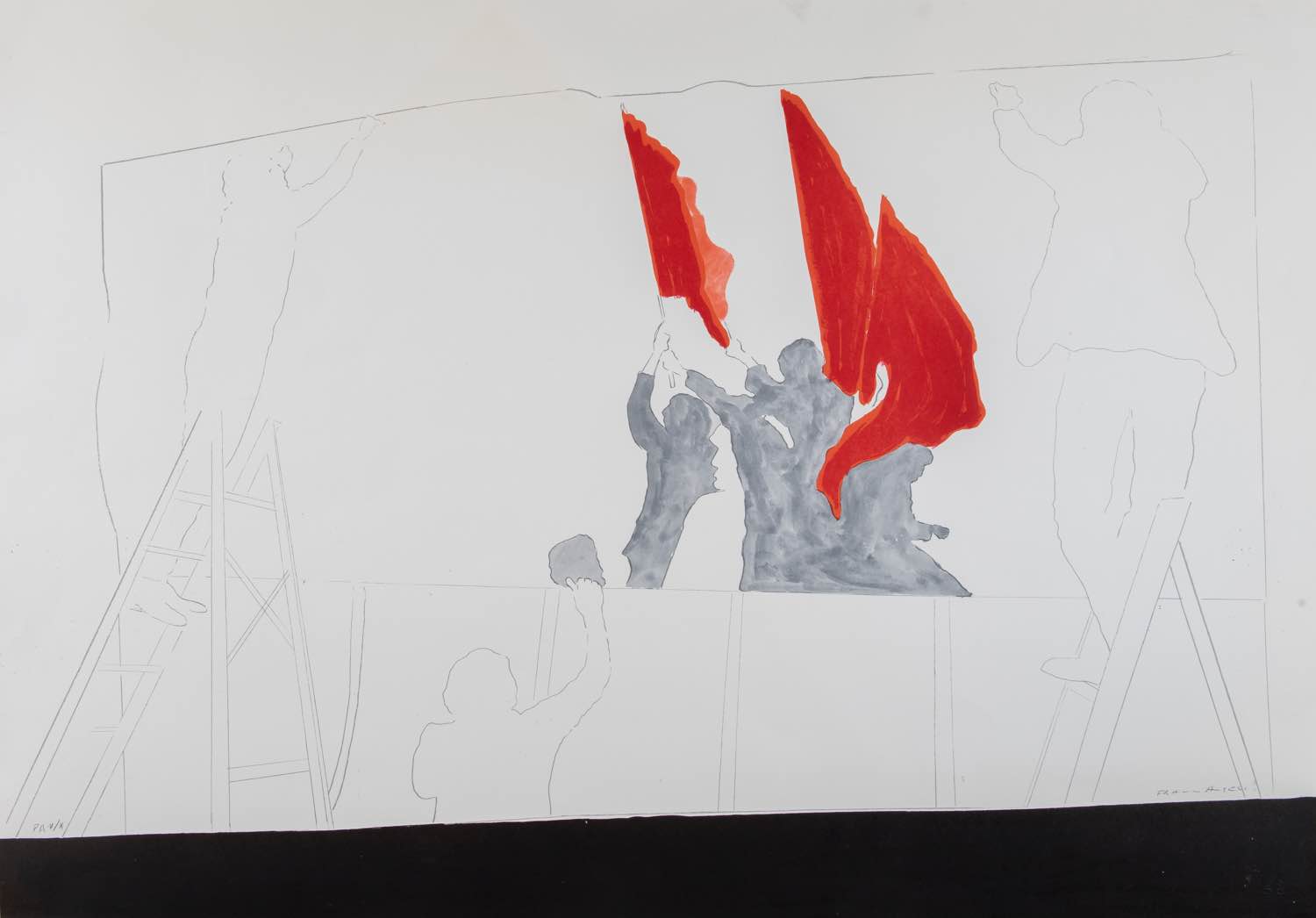 Franco Angeli (Roma 1935 - 1988), “Bandiere rosse”.