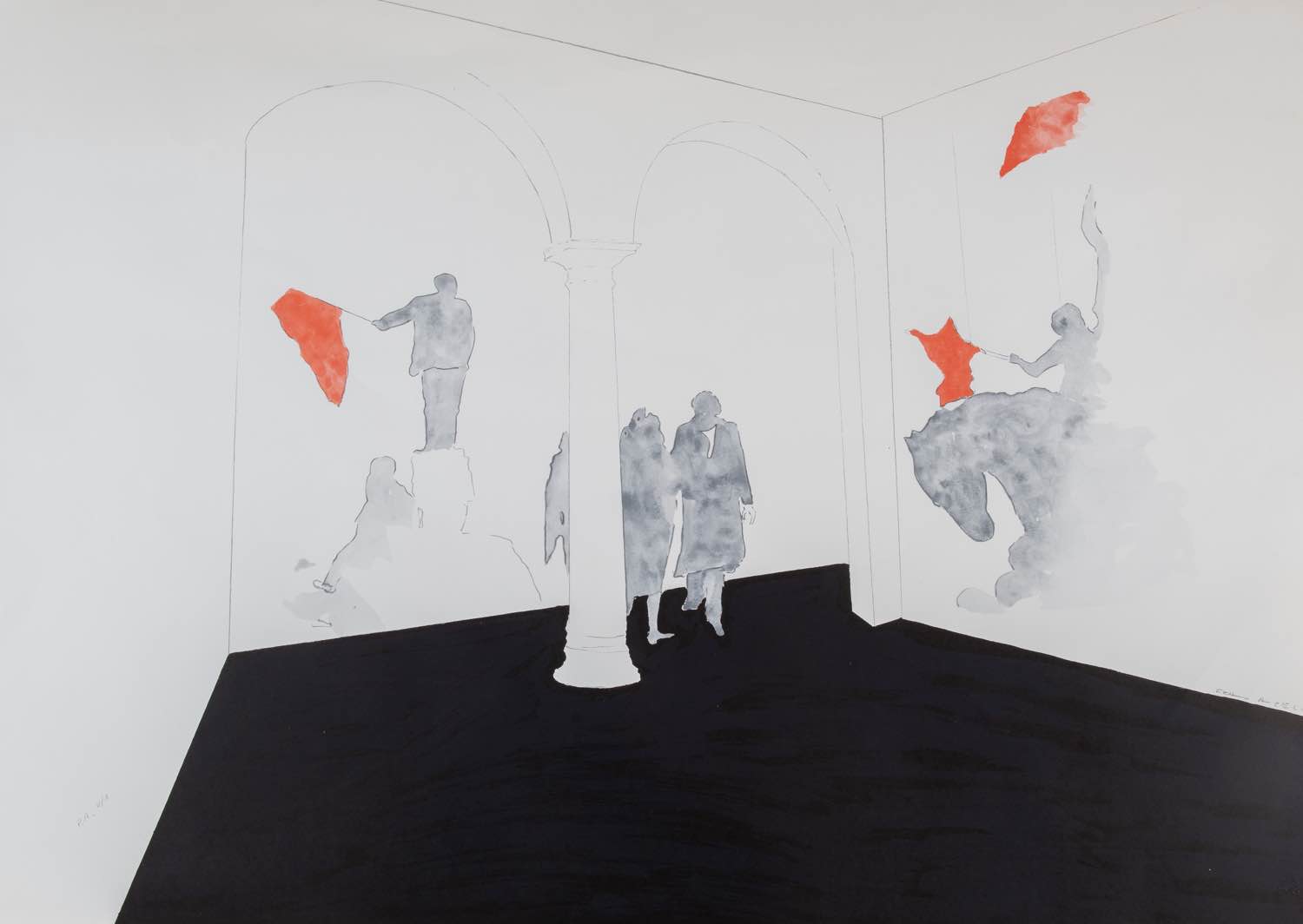 Litografia a colori su carta, firmata in basso a destra Franco Angeli, in basso a sinistra esemplare PA V/X, reca timbro a secco, H cm 70x100