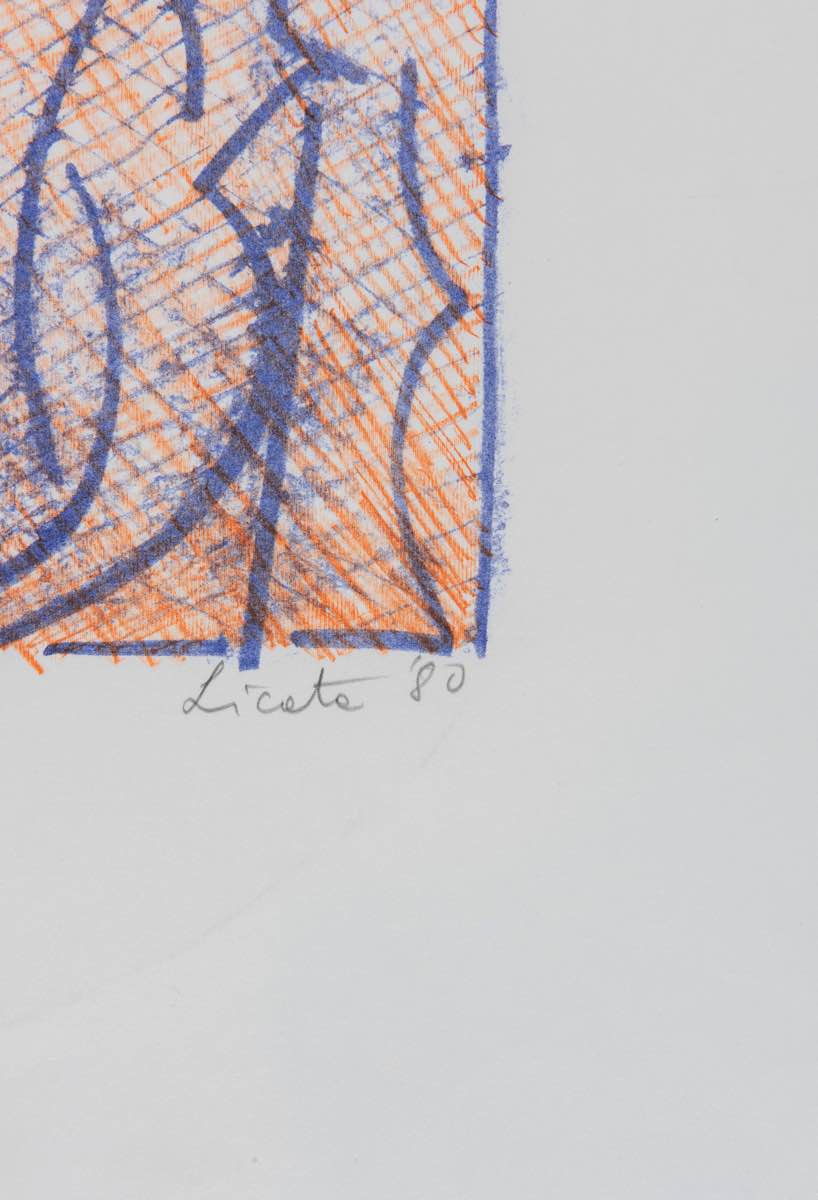 Litografia a colori su carta, firmata e datata in basso a destra Licata ‘80, numero di tiratura in basso a sinistra 43/70, reca timbro a secco, al retro timbro Centro Internazionale della Grafica con numerazione 506, H cm 70x49.5
