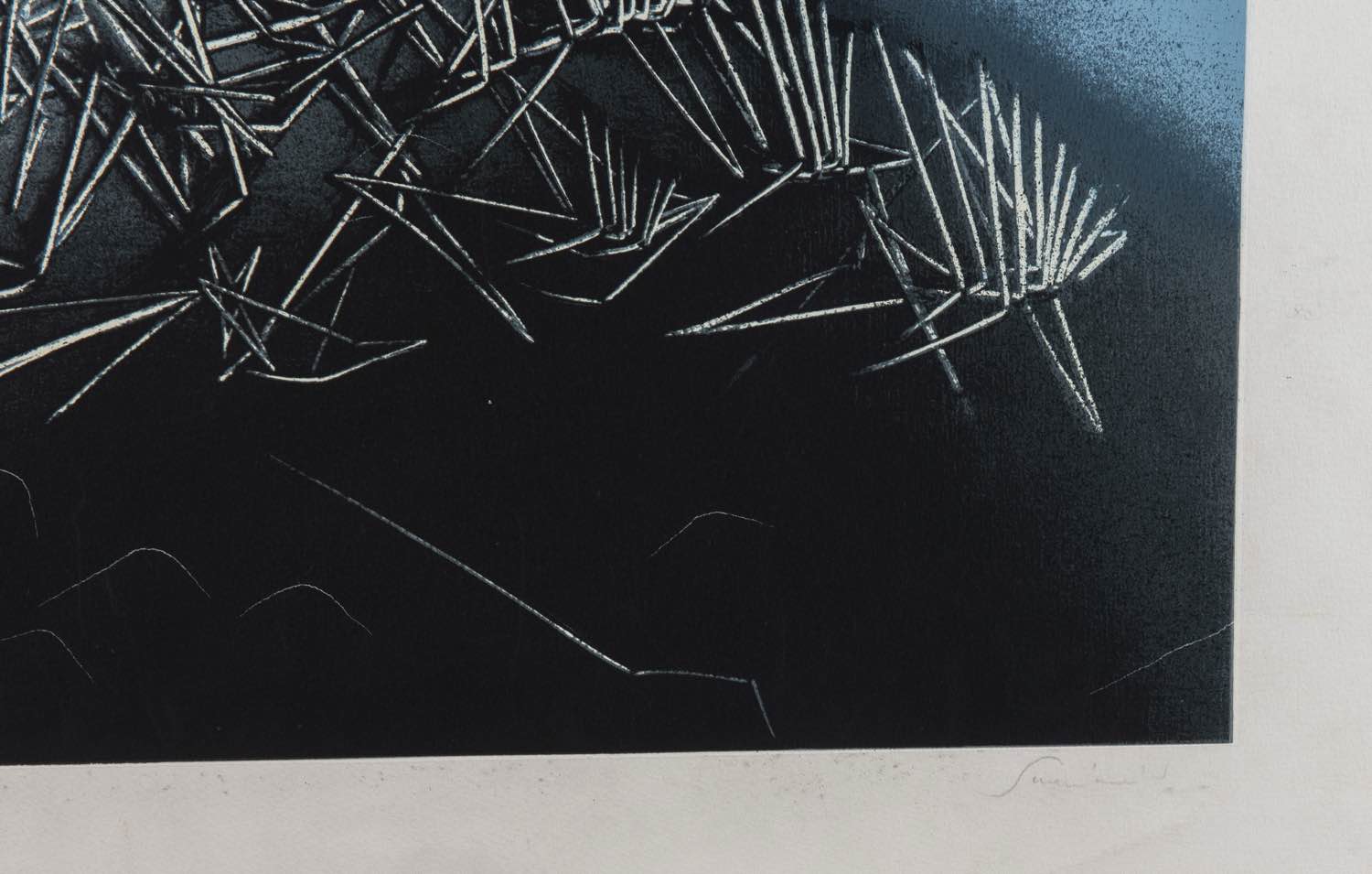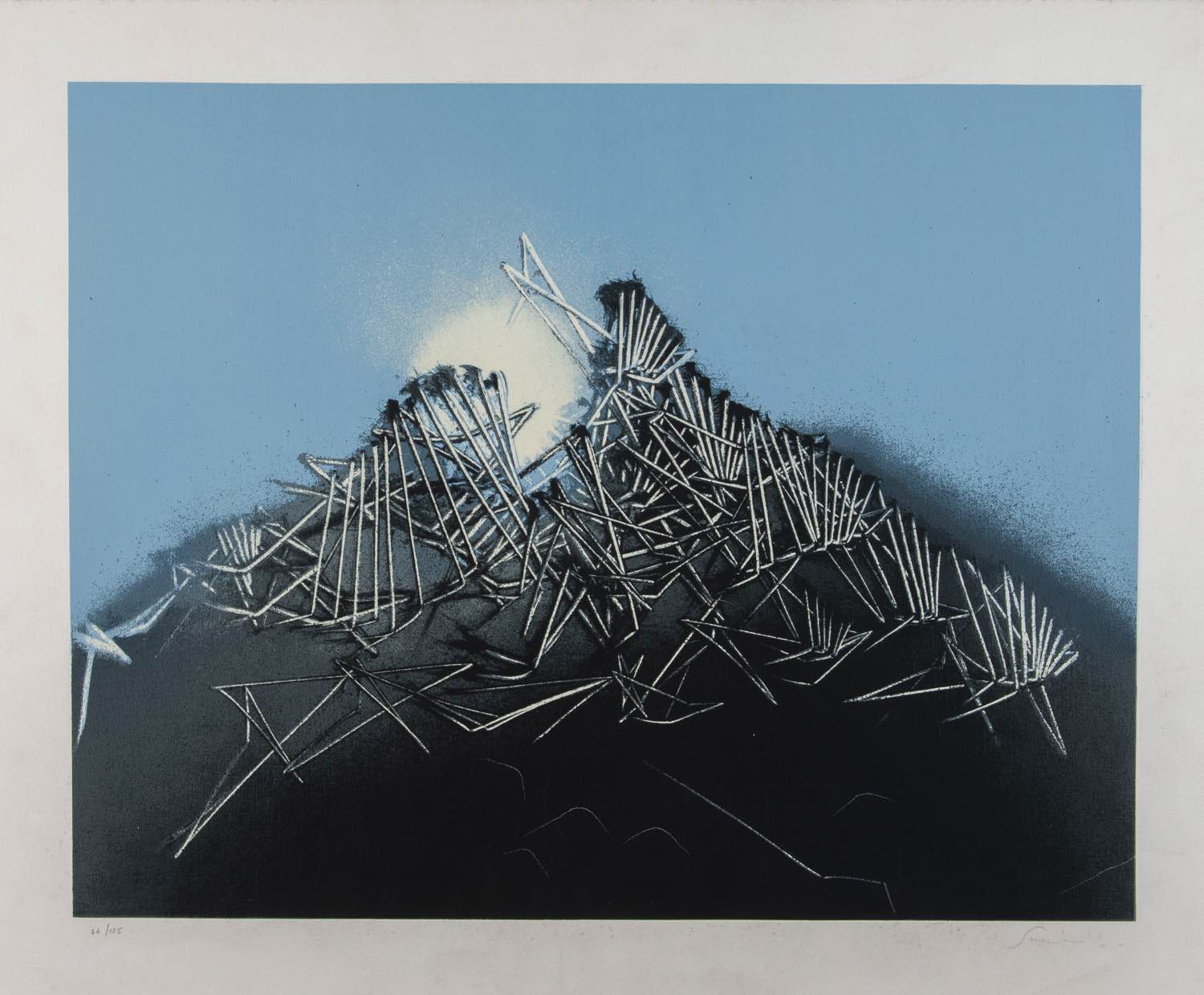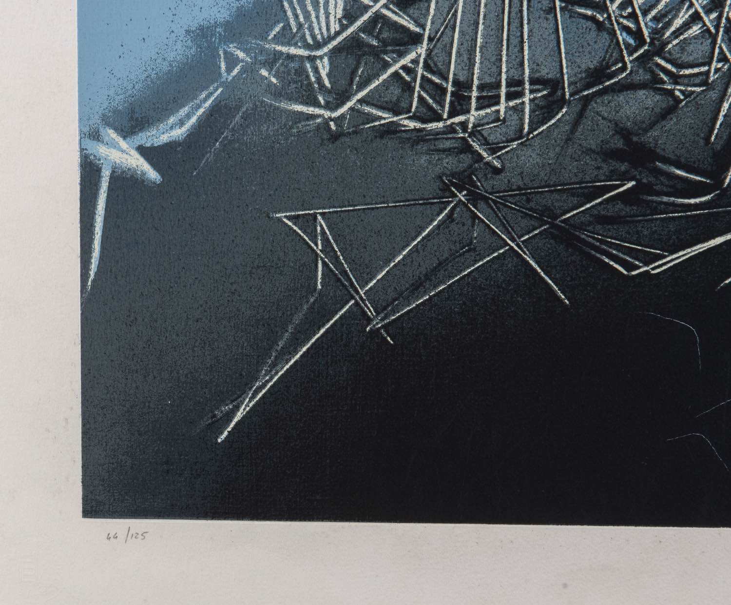 Litografia a colori su carta, firmata in basso a destra Scanavino, numero di tiratura in basso a sinistra 44/125, reca timbro a secco, Foglio H cm 59.5x72.5 - Lastra H cm 49x62.5